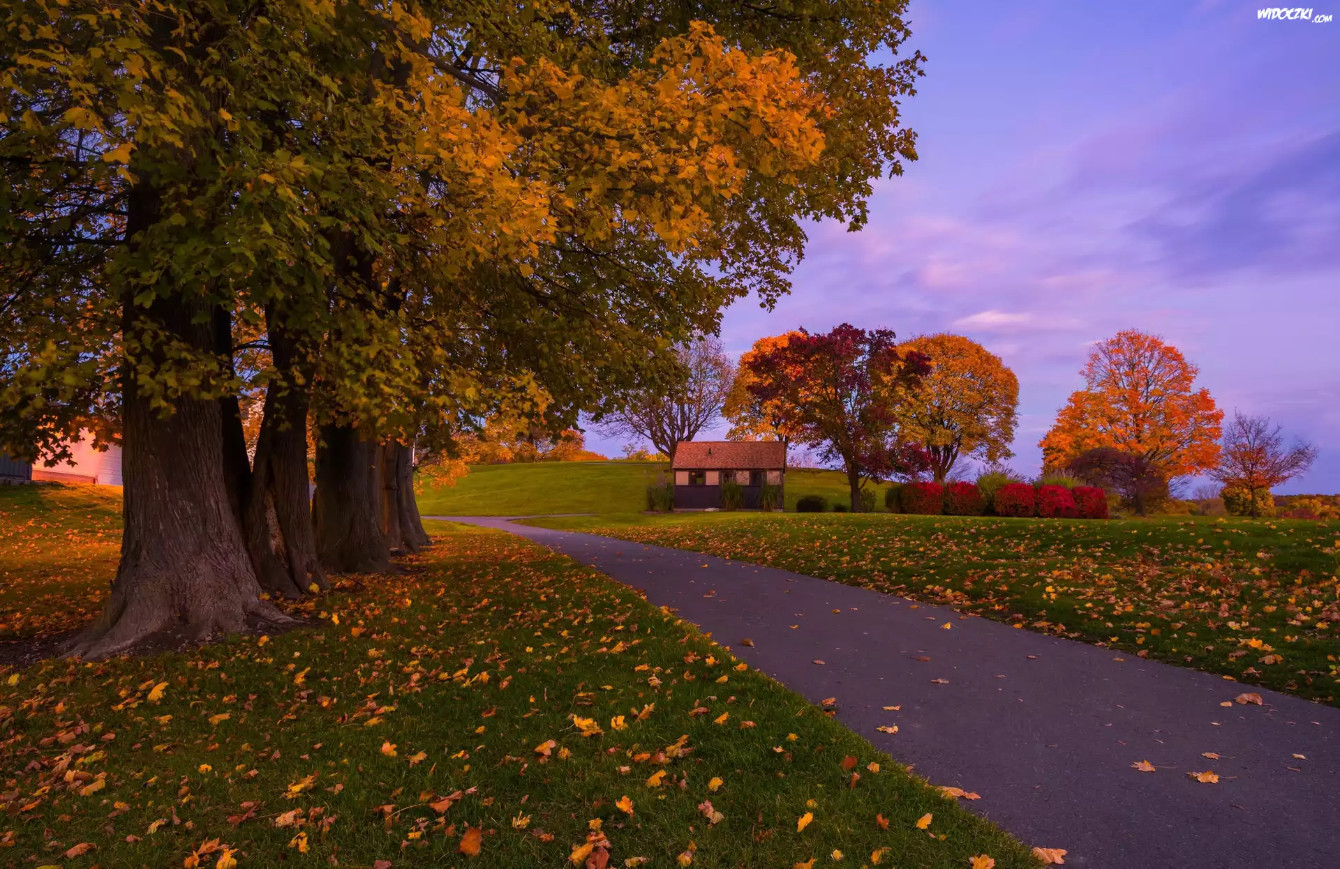 Zdjęcia, Drzewa, Droga, Dom, Jesień