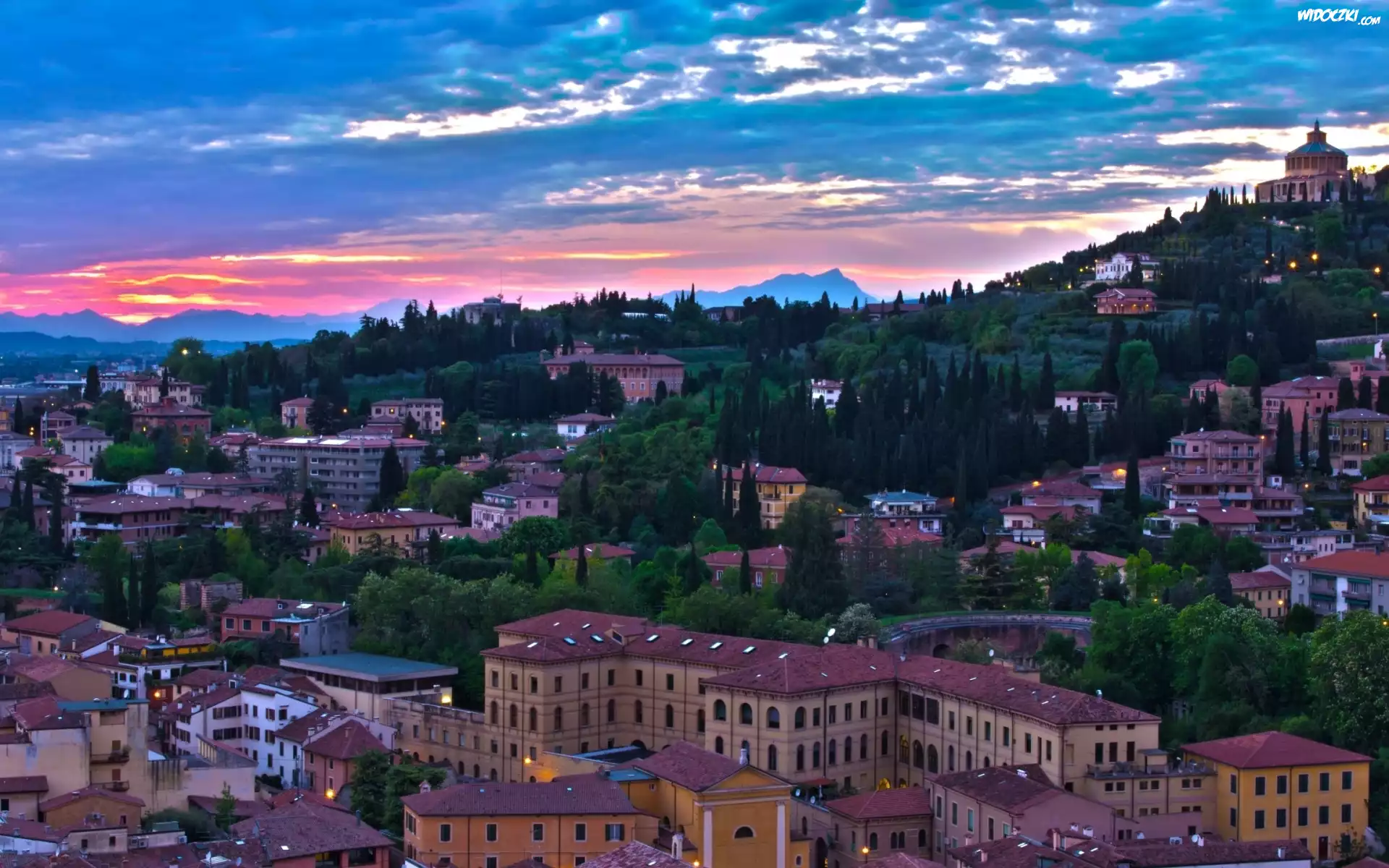Zdjęcia, Domy, Drzewa, Góry, Chmury, Verona, Panorama, Miasta
