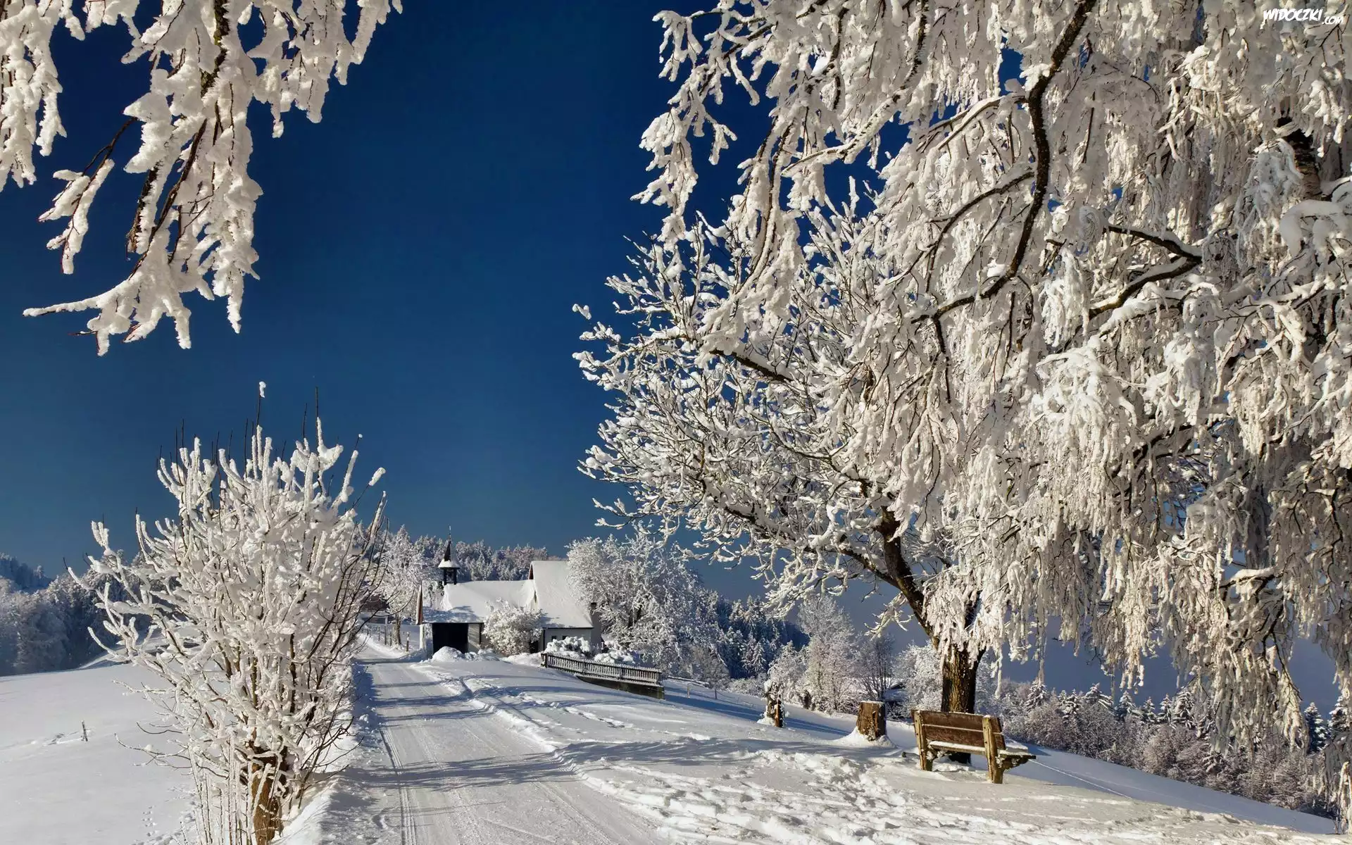 Zdjęcia, Droga, Drzewa, Kościółek
