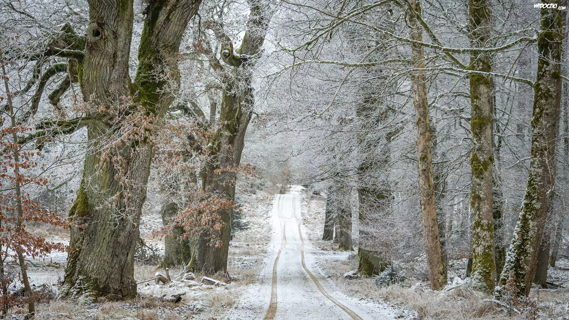 Droga, Zima, Las, Drzewa