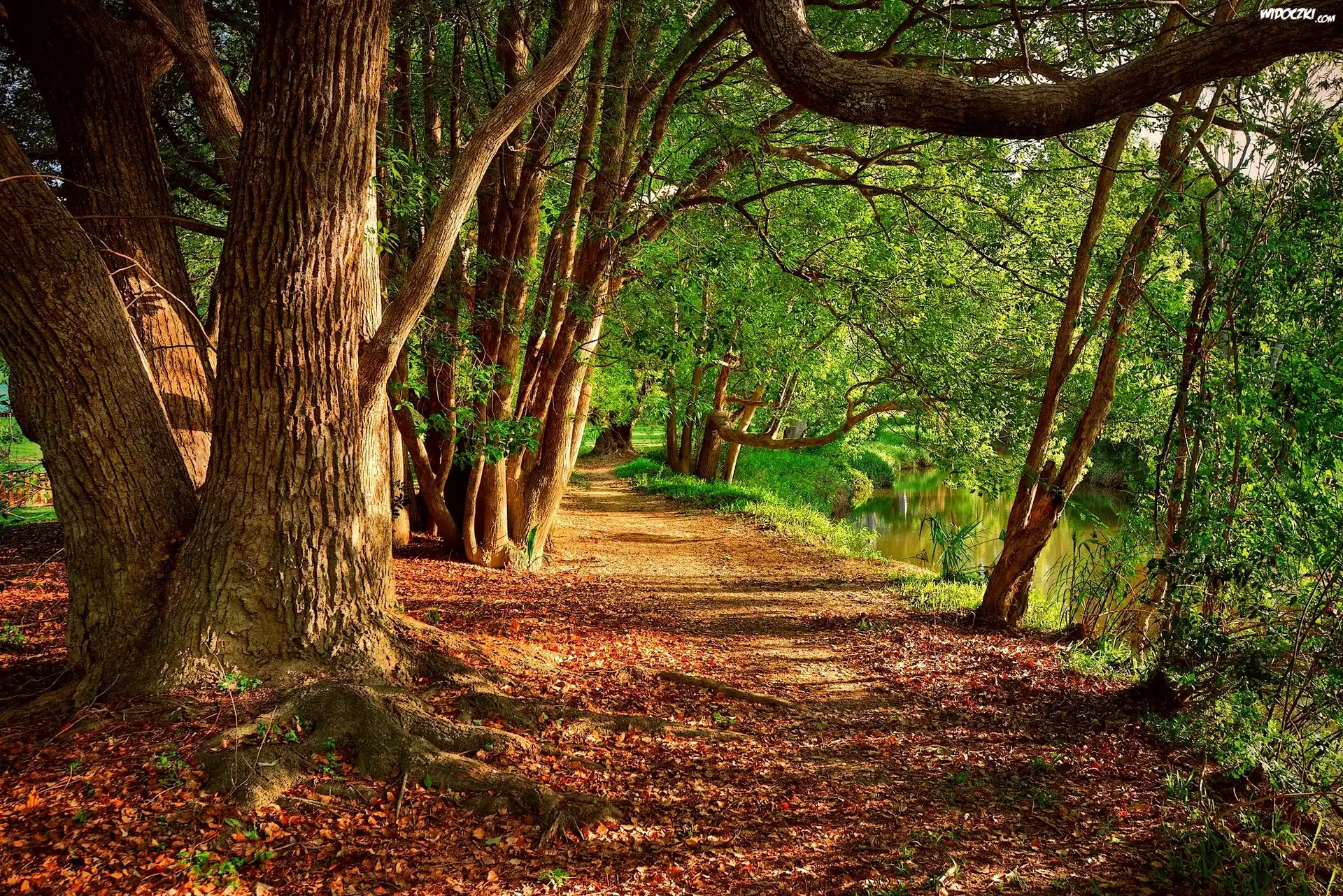 Zdjęcia, Droga, Drzewa, Rzeczka