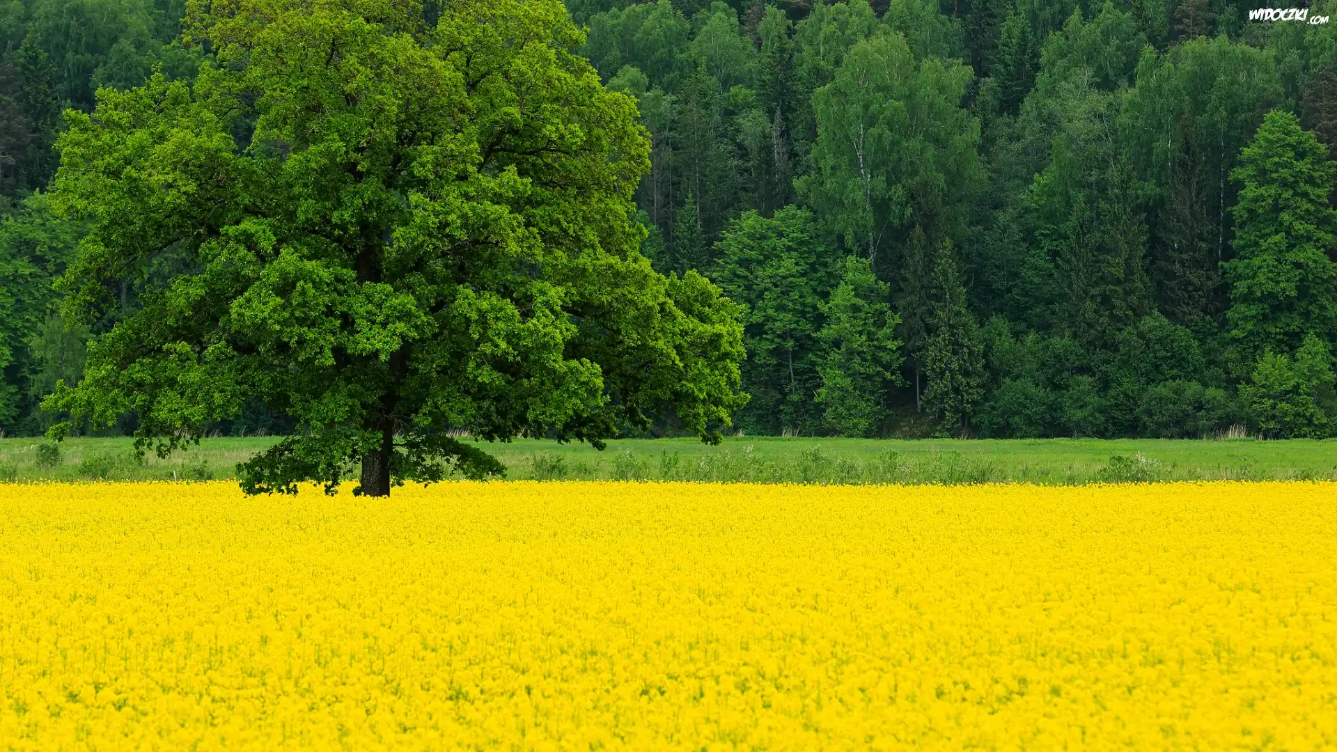 Zdjęcia, Drzewa, Pole, Rzepak, Kwitnący, Drzewo, Wiosna