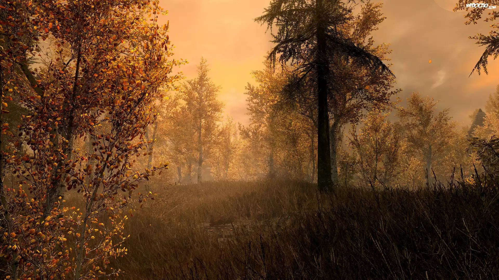 Gra, The Elder Scrolls V: Skyrim, Jesień, Las, Drzewa