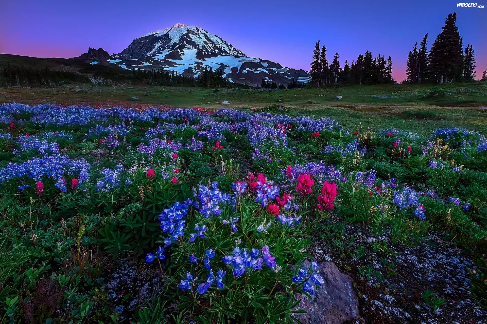 Zdjęcia, Łąka, Góry, Drzewa, Kwiaty