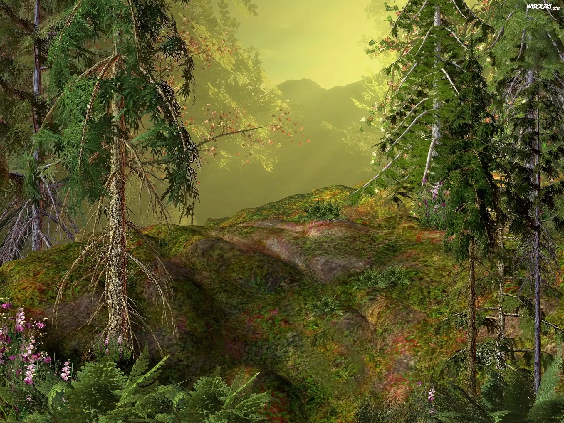 Drzewa, Las, Góry, 3D