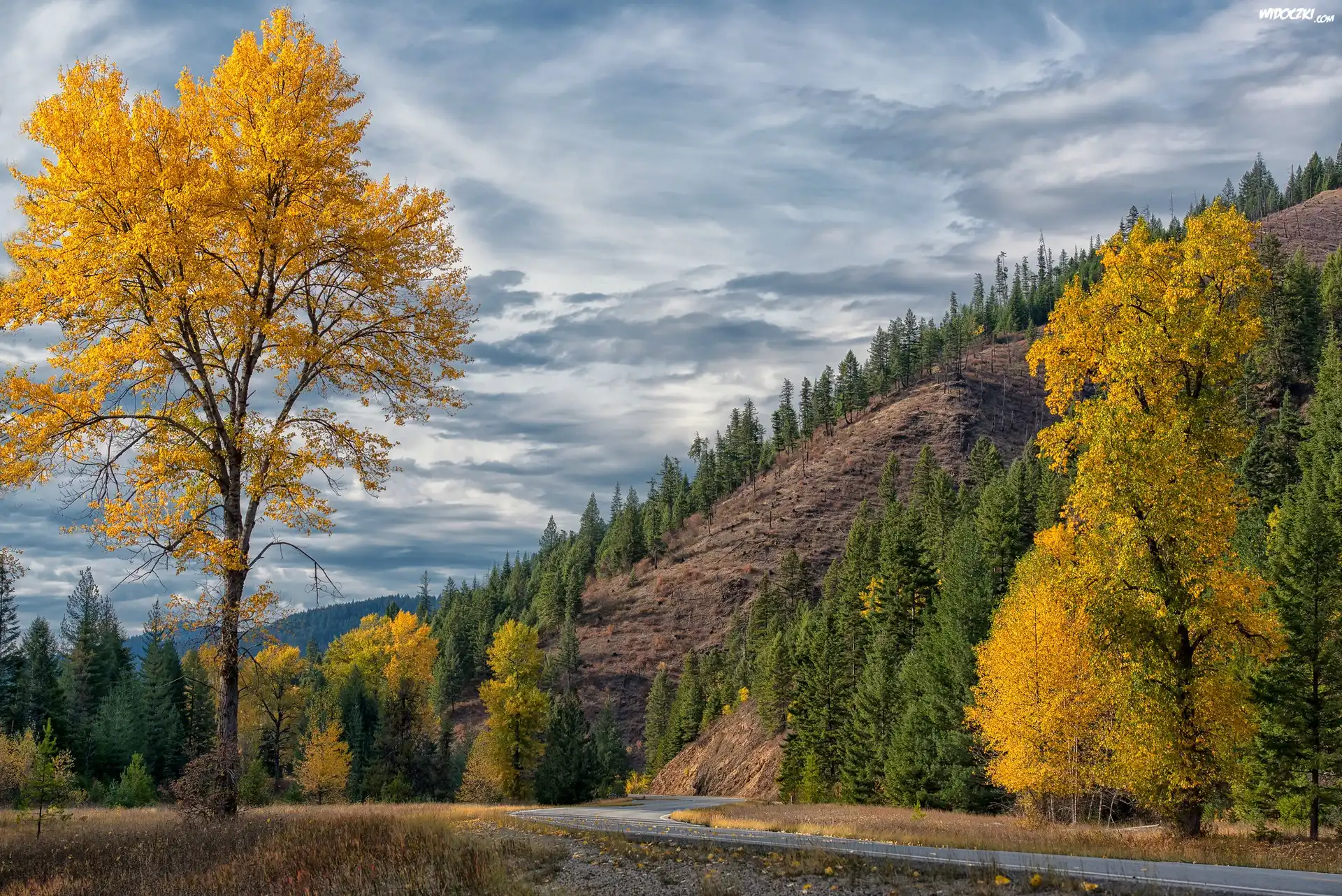 Jesień, Drzewa, Góry, Pożółkłe, Liście