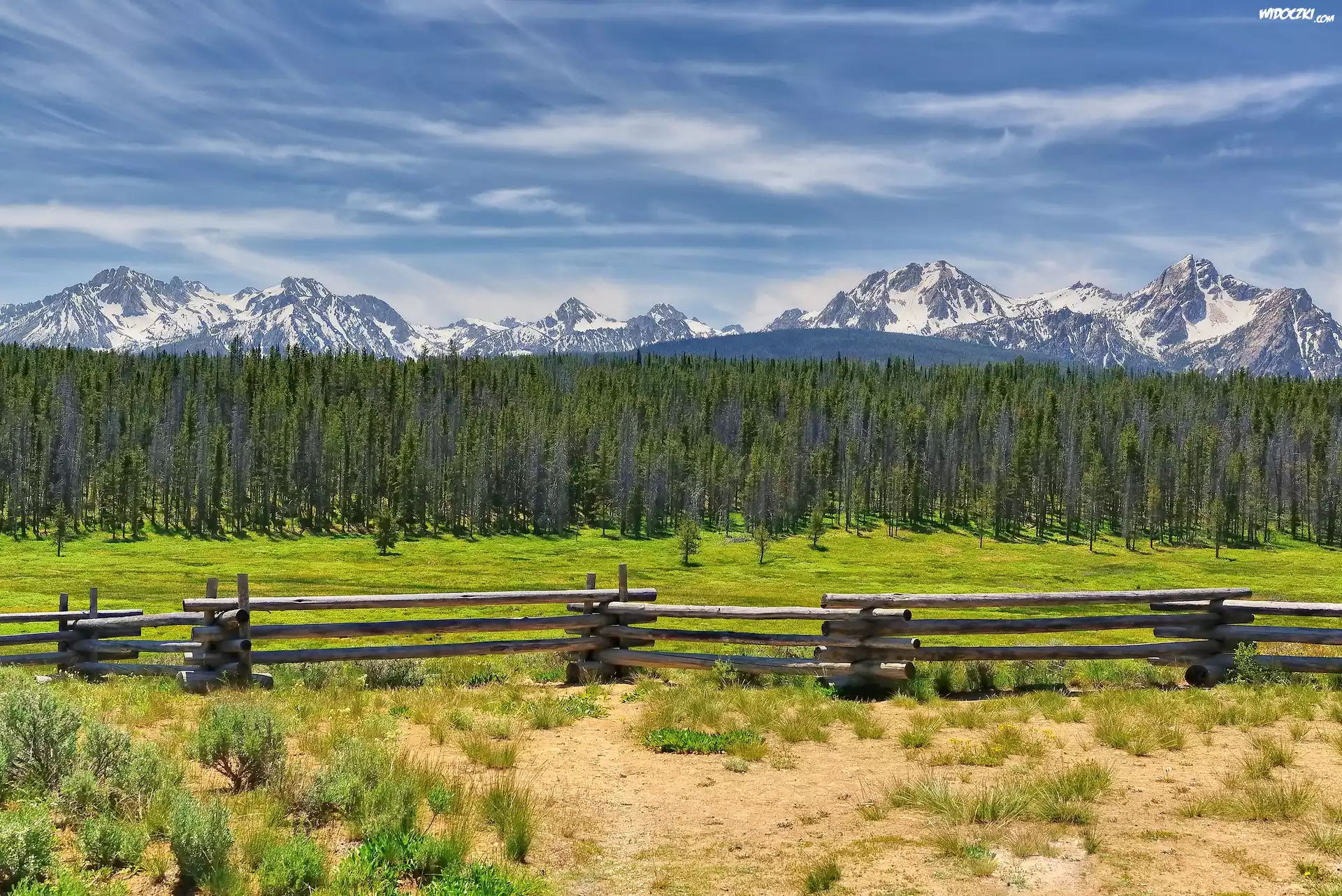 Zdjęcia, Łąka, Pastwisko, Ogrodzenie, Drzewa, Las, Góry