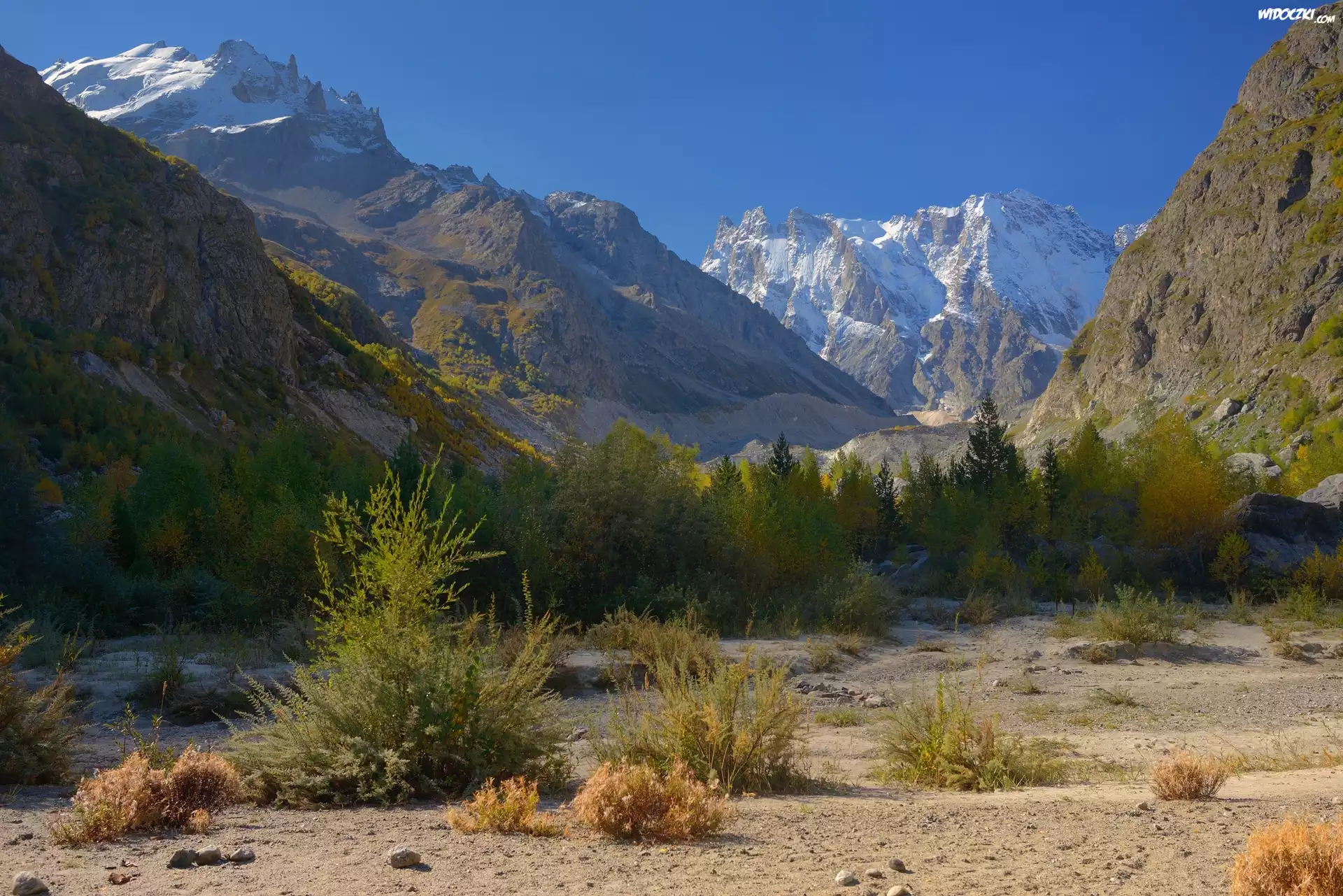 Zdjęcia, Góry, Drzewa, Krzewy, Kaukaz, Kabardo-Bałkaria, Rosja