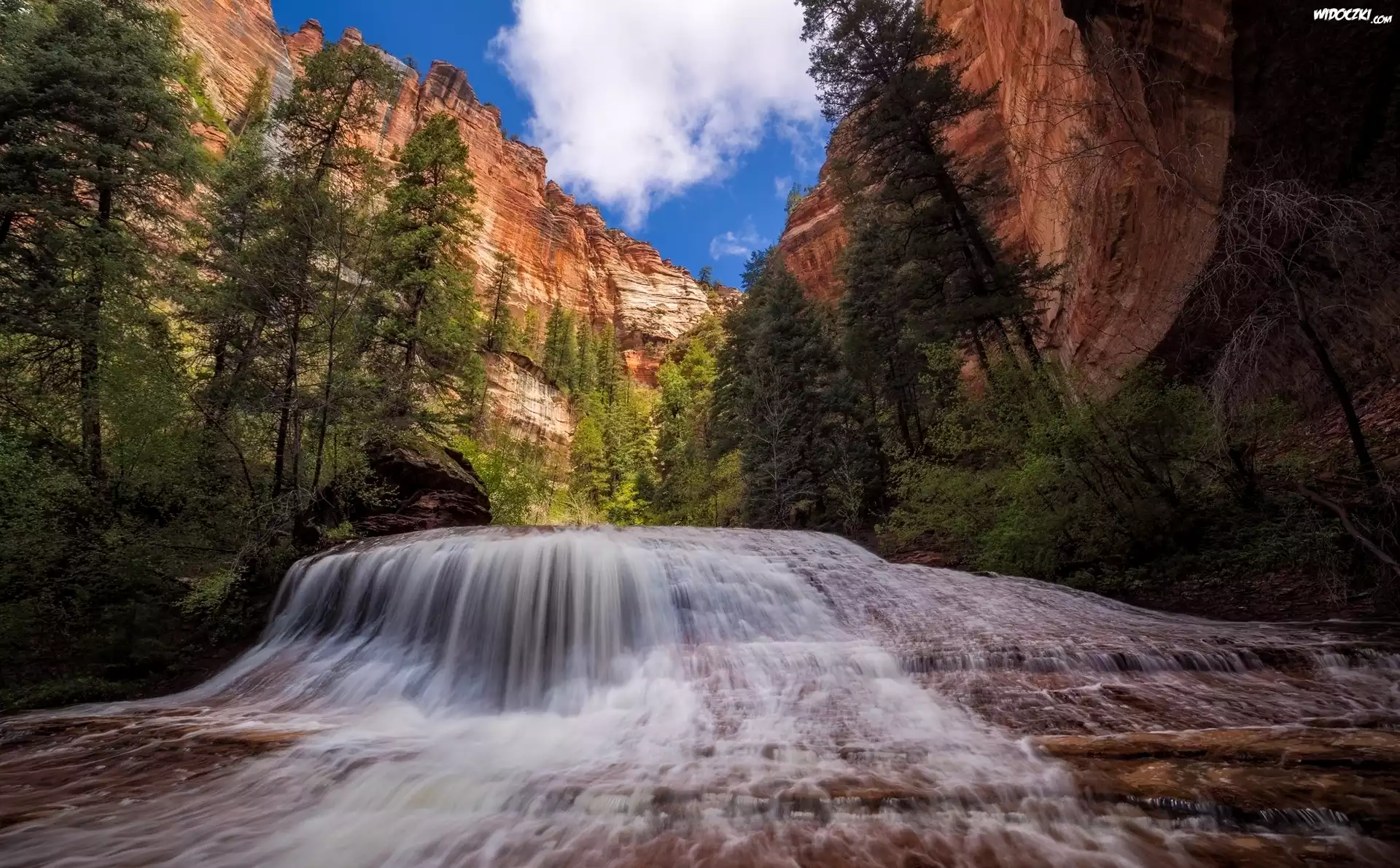 Zdjęcia, Góry, Drzewa, Wodospad