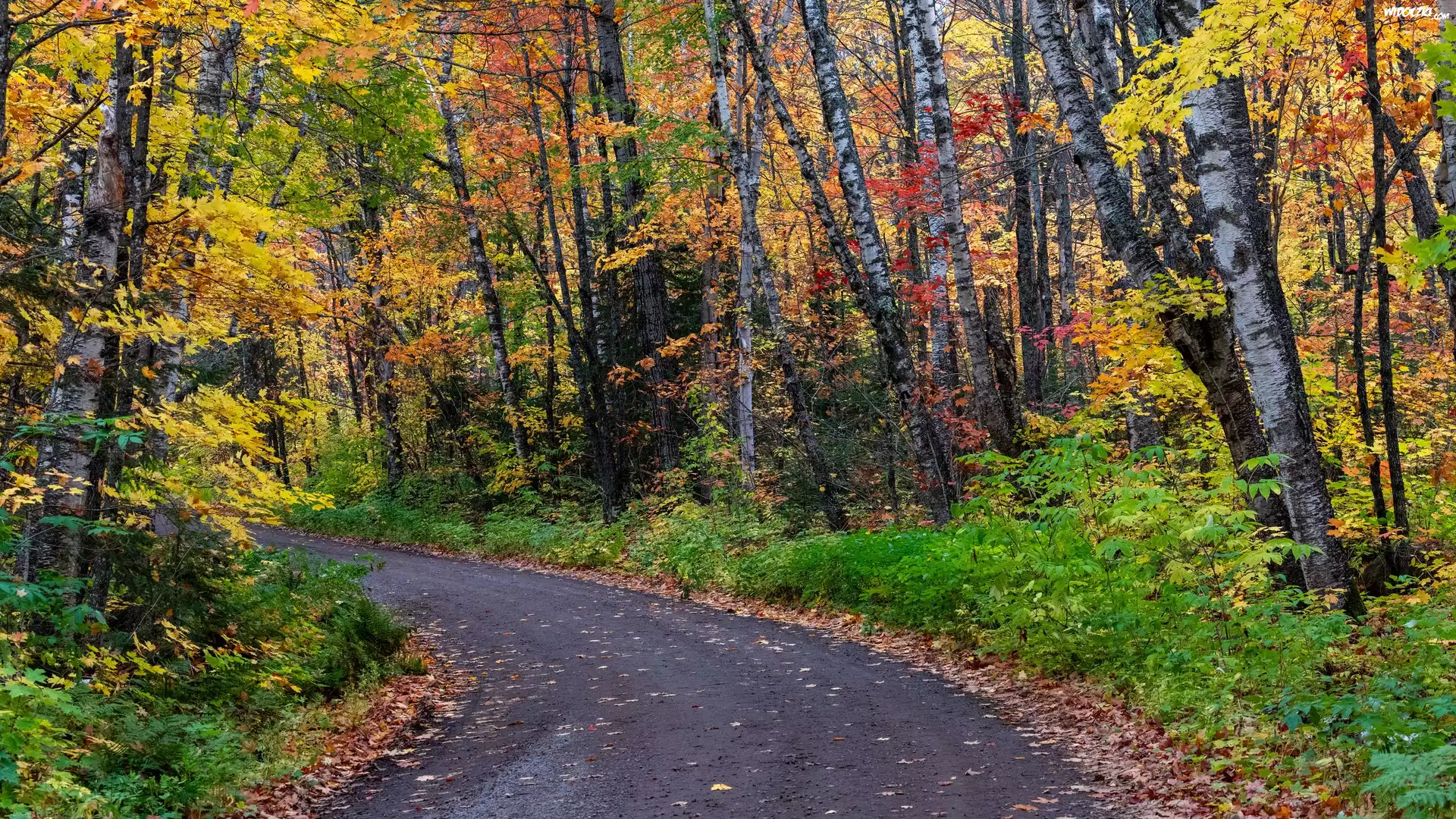 Zdjęcia, Droga, Zakręt, Kolorowe, Drzewa, Las, Jesień