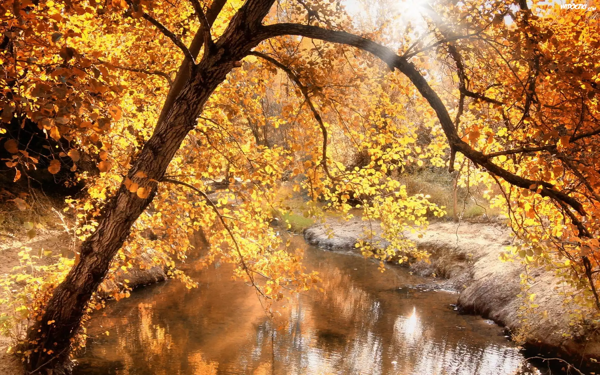 Jesień, Drzewa, Rzeka