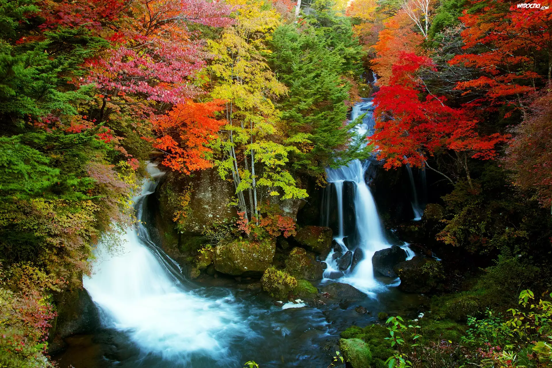 Zdjęcia, Jesień, Drzewa, Wodospady