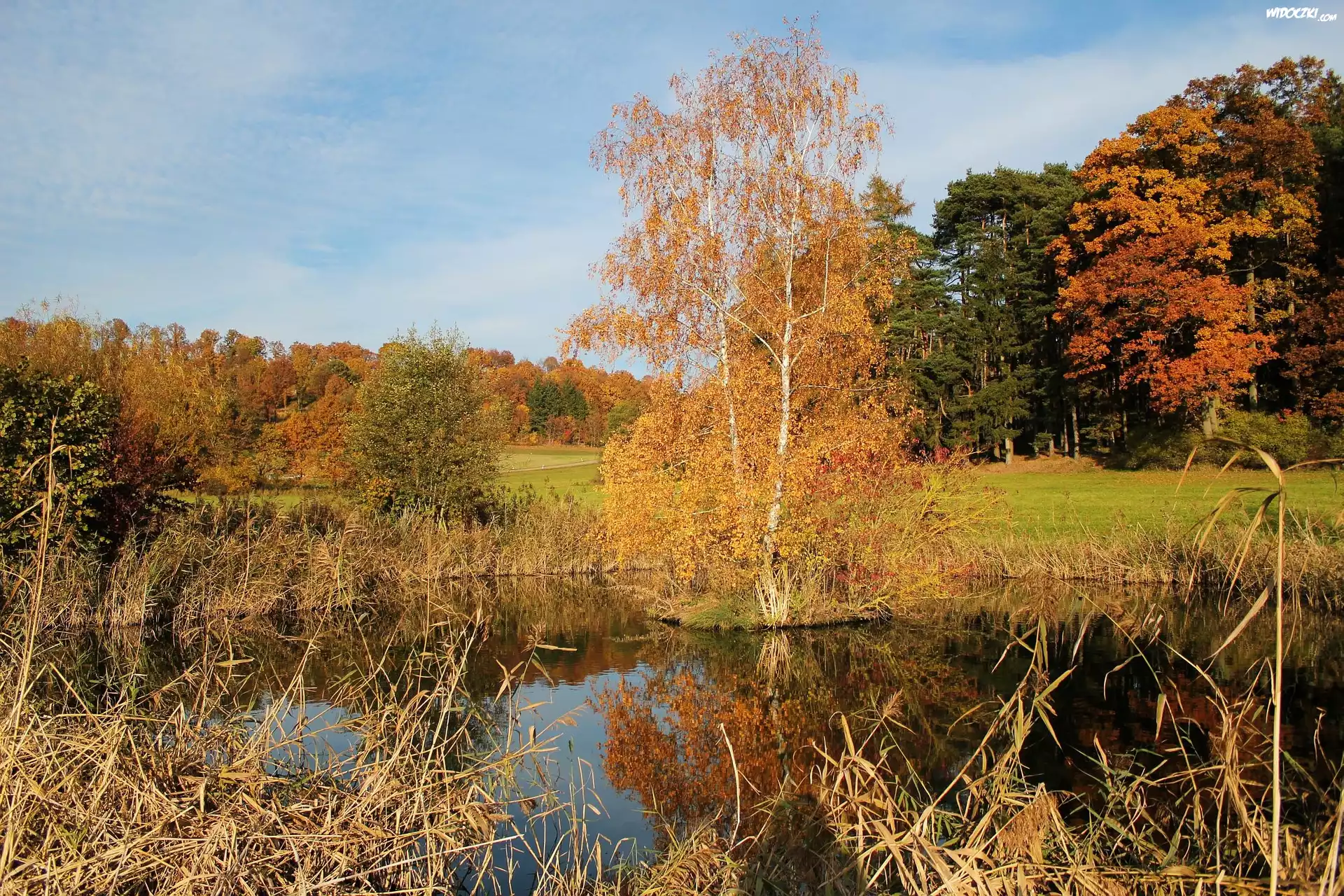 Zdjęcia, Jezioro, Drzewa, Łąka