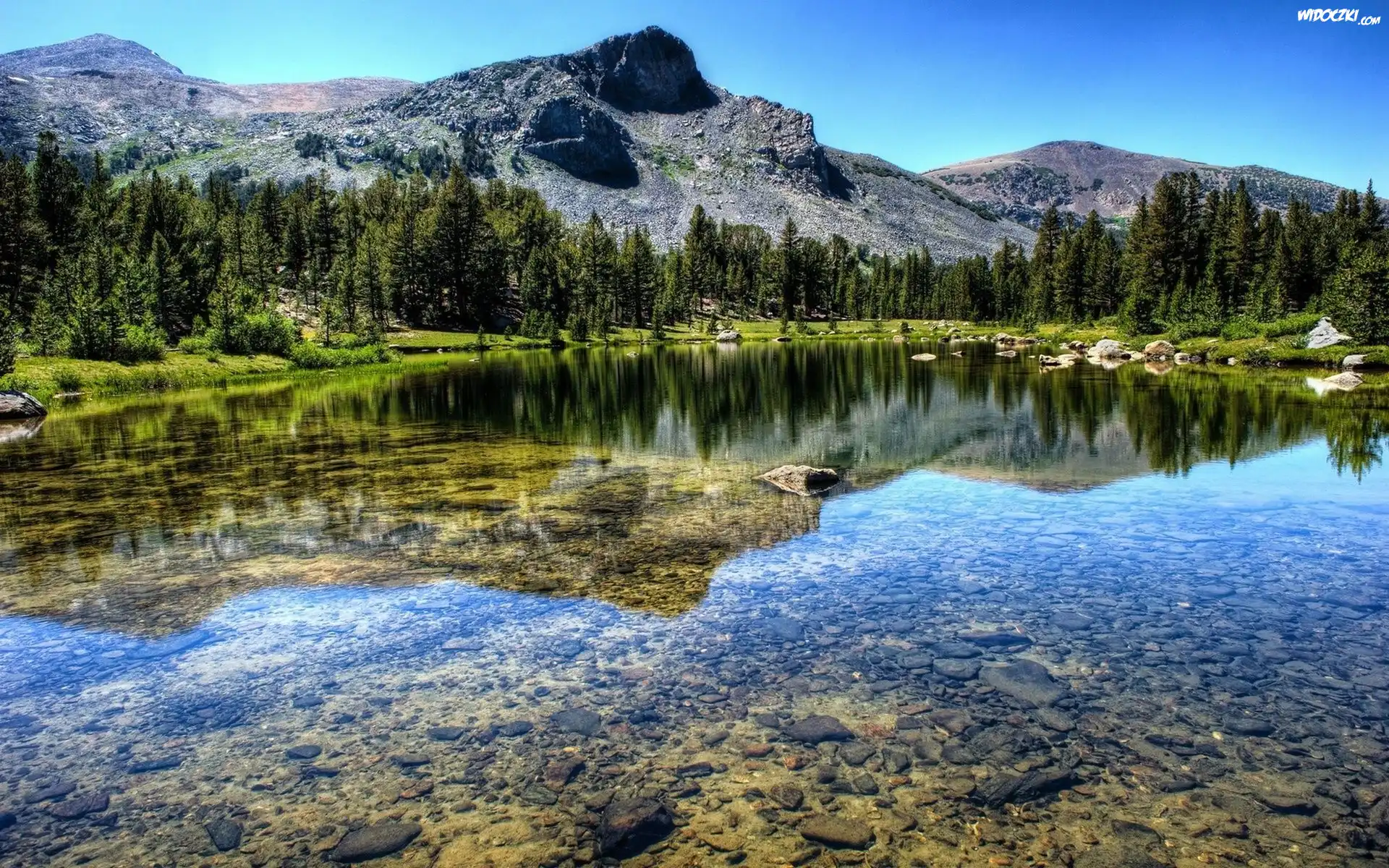 Zdjęcia, Jezioro, Drzewa, Góry