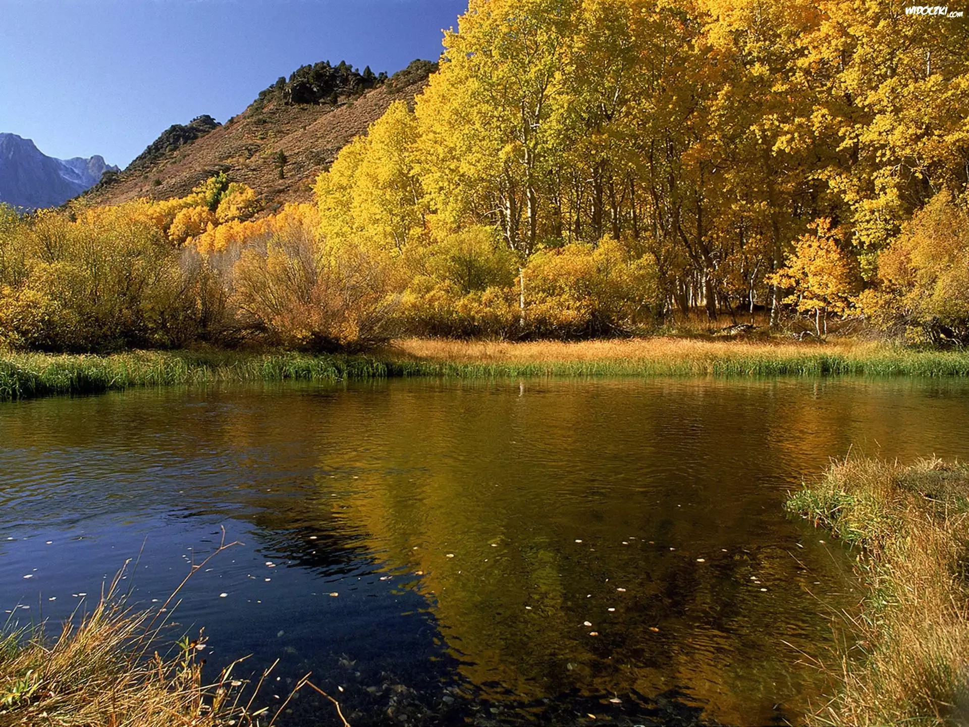 Zdjęcia, Jezioro, Drzewa, Jesień