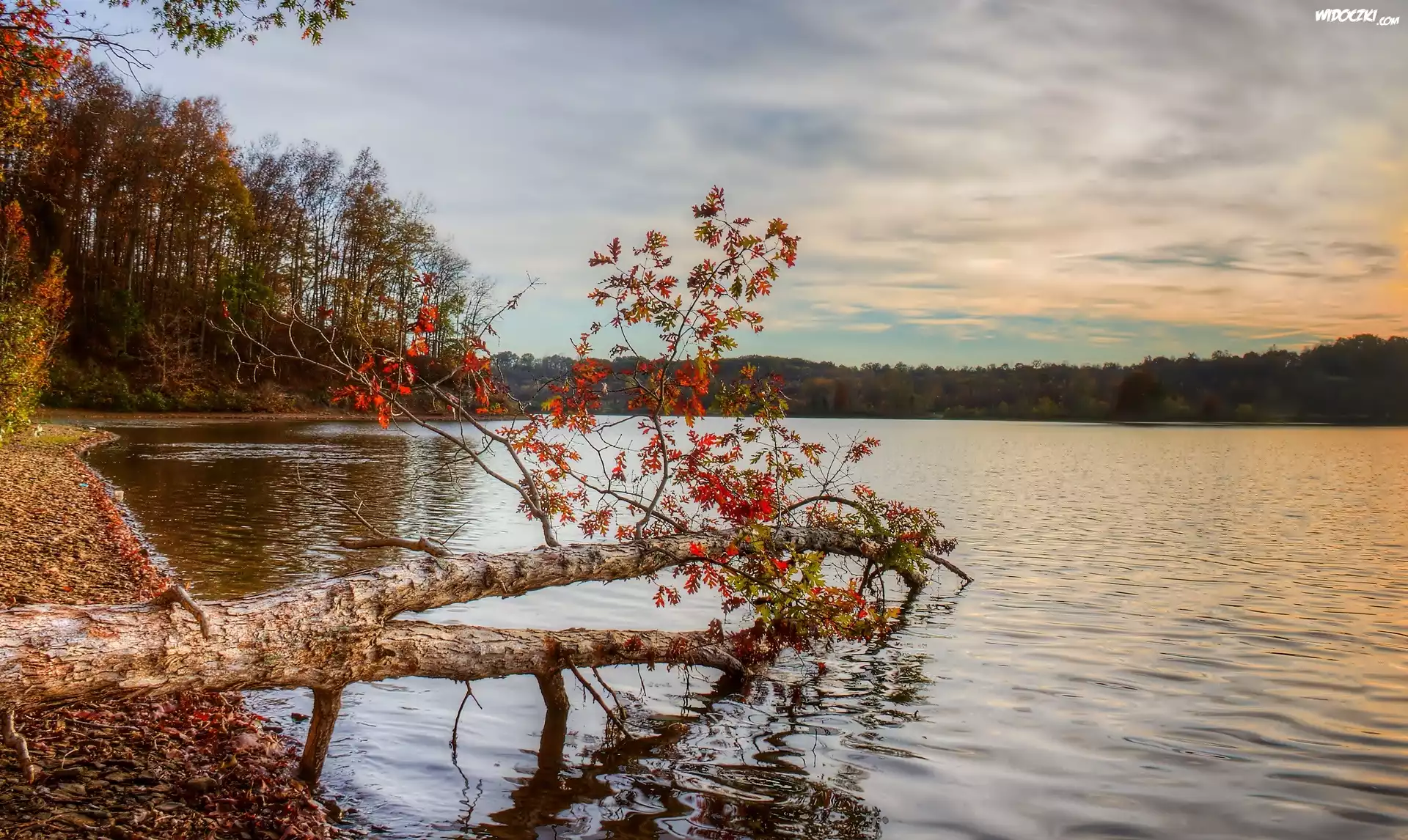 Zdjęcia, Jezioro, Drzewa, Jesień