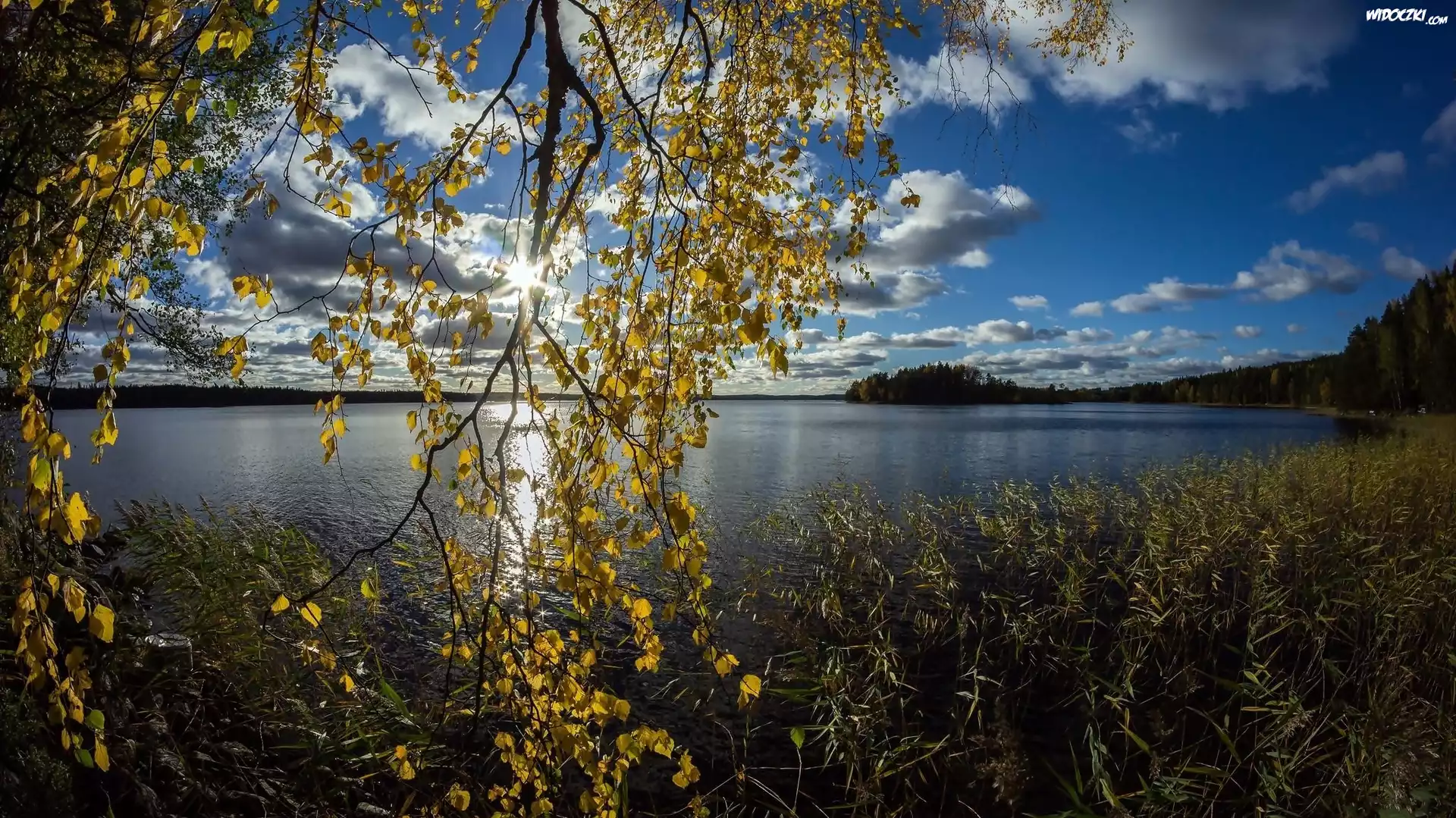 Zdjęcia, Jezioro, Drzewa, Trawy, Lasy, Promienie, Słońca, Lato