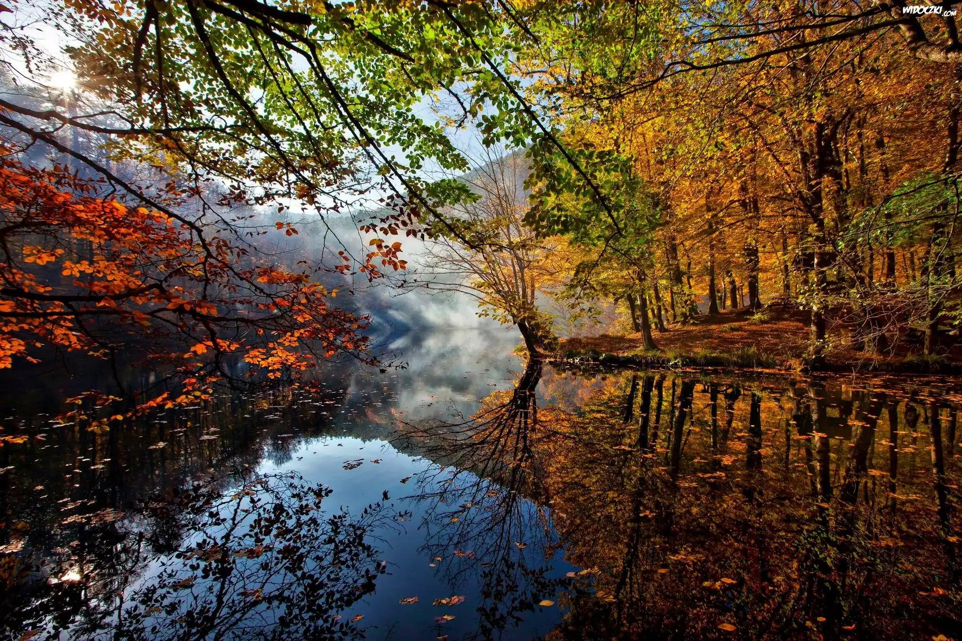 Zdjęcia, Jezioro, Drzewa, Liście