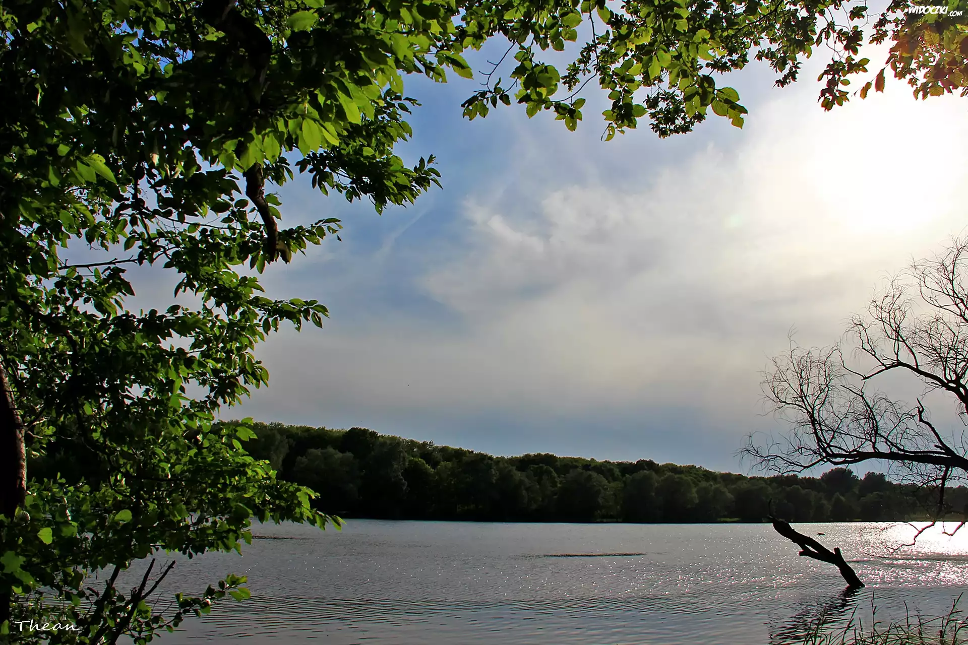Jezioro, Drzewa, Niebo