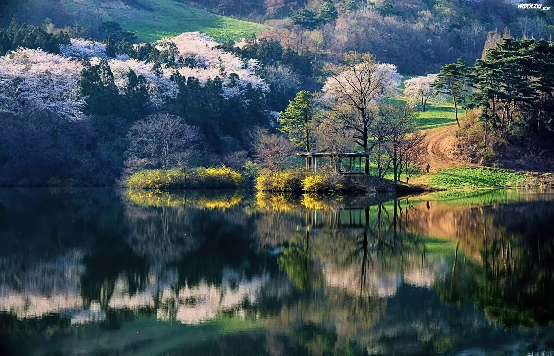 Jezioro, Drzewa, Odbicie