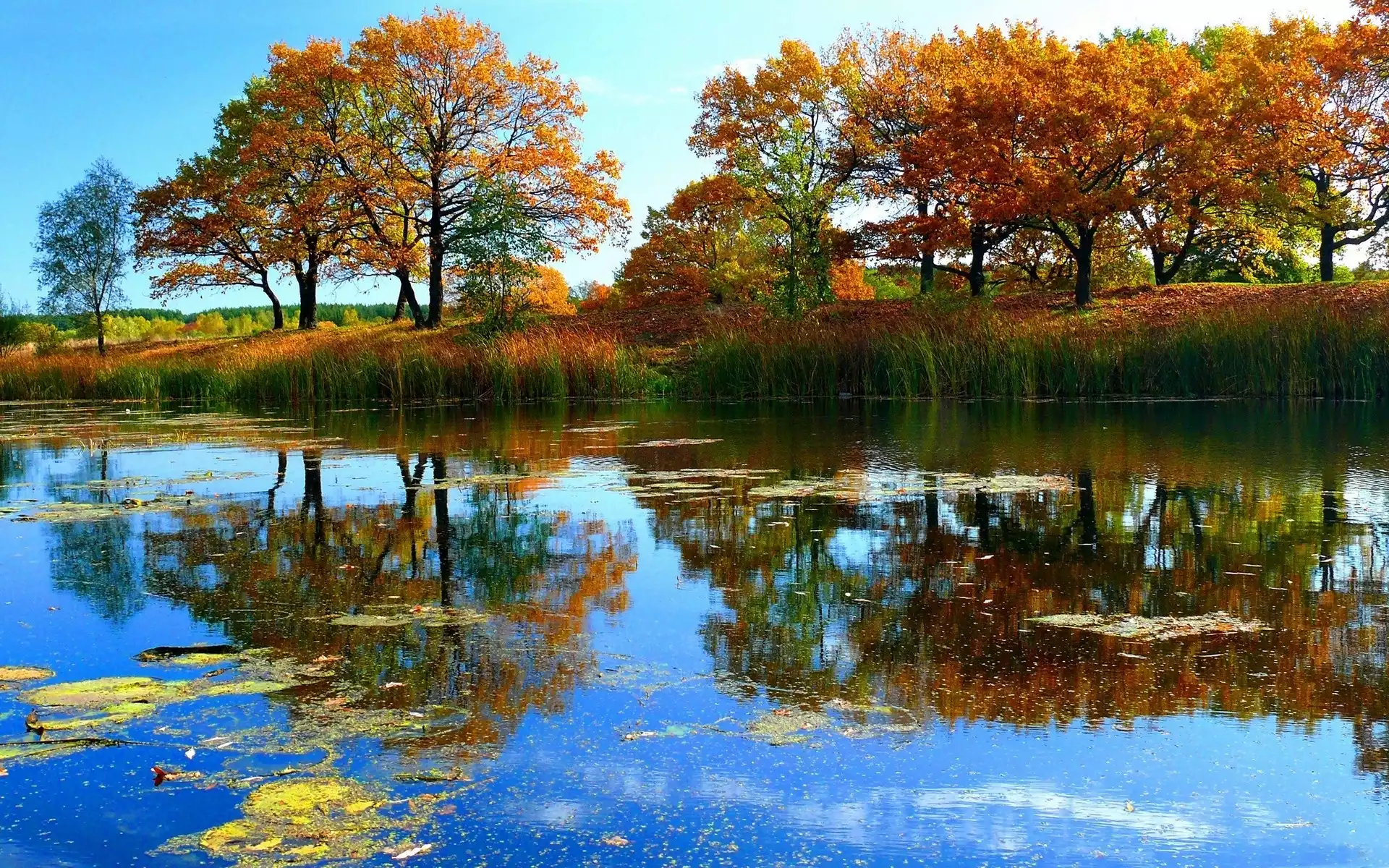 Zdjęcia, Jezioro, Drzewa, Odbicie