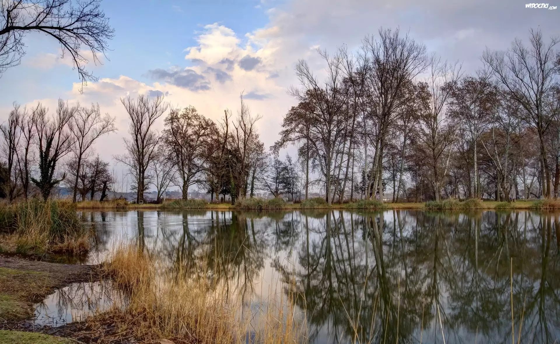 Zdj臋cia, Jezioro, Drzewa, Odbicie