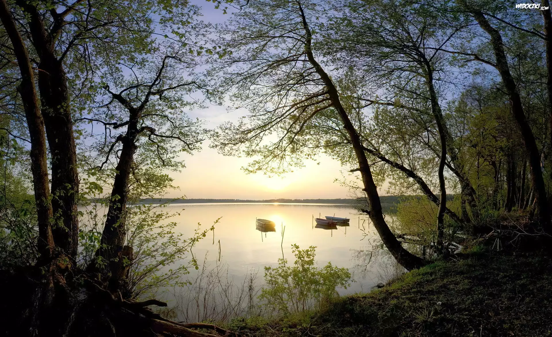 Jezioro, Drzewa, Łódki