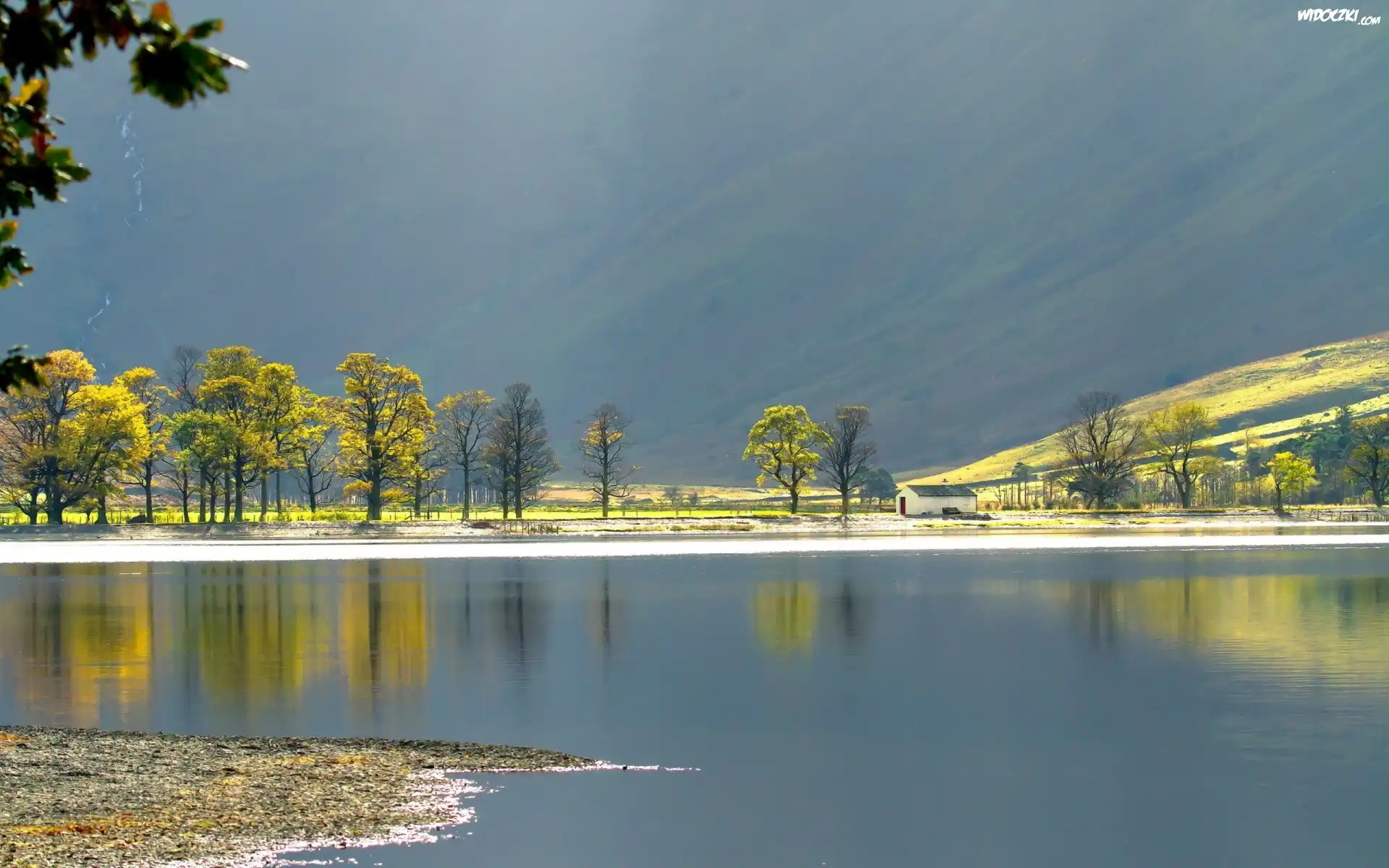 Zdjęcia, Jezioro, Drzewa, Szopa