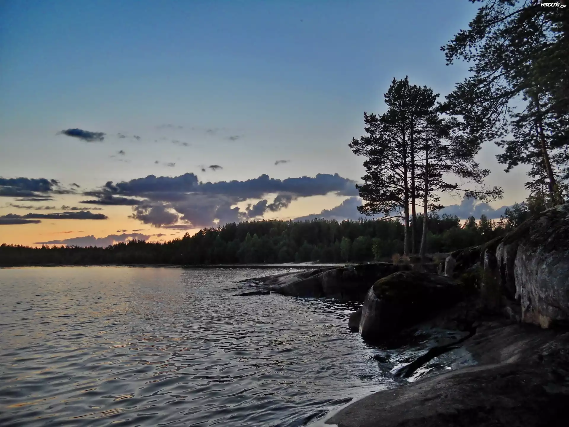 Jezioro, Drzewa, Åšwit