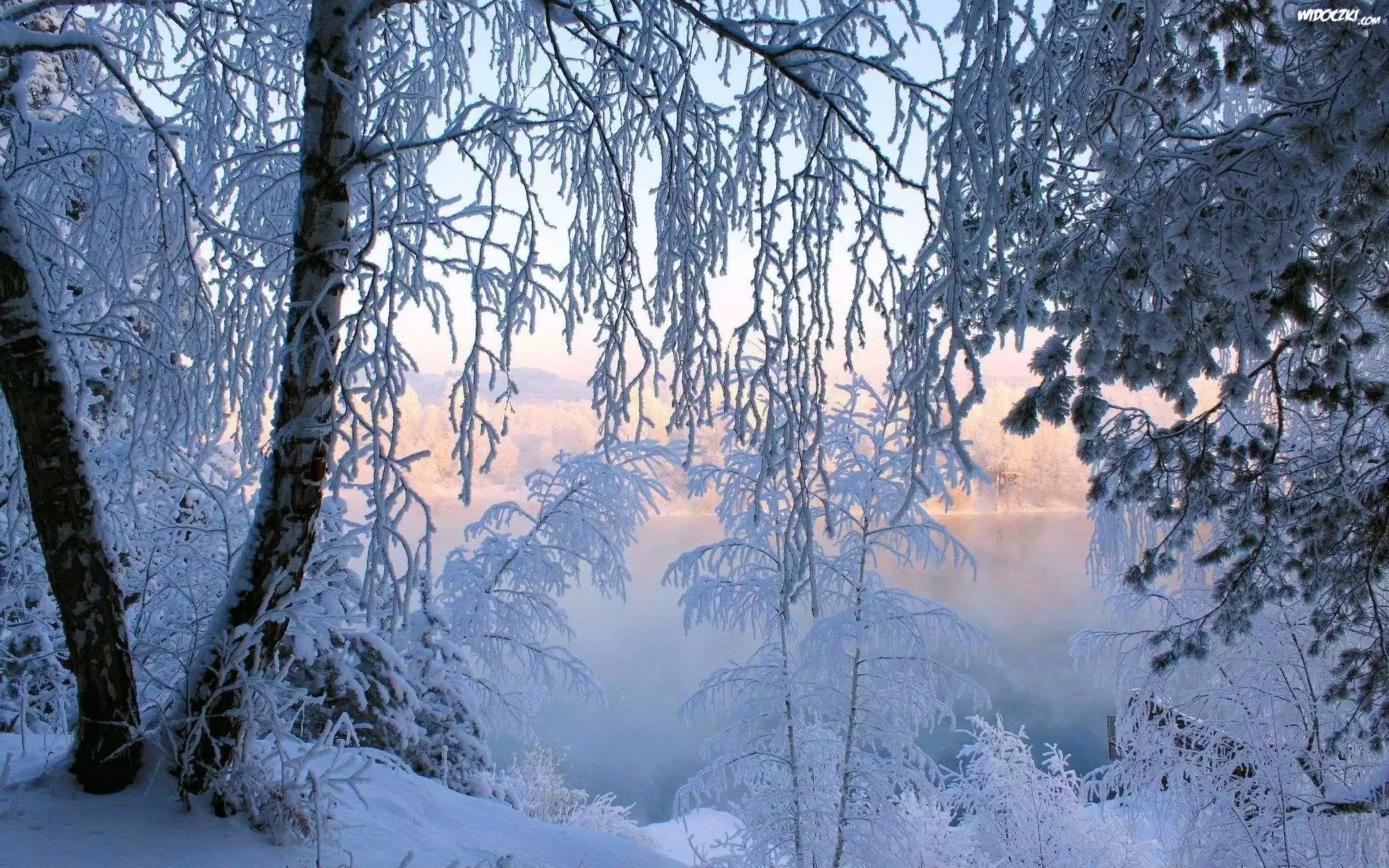 Zdjęcia, Jezioro, Drzewa, Zima