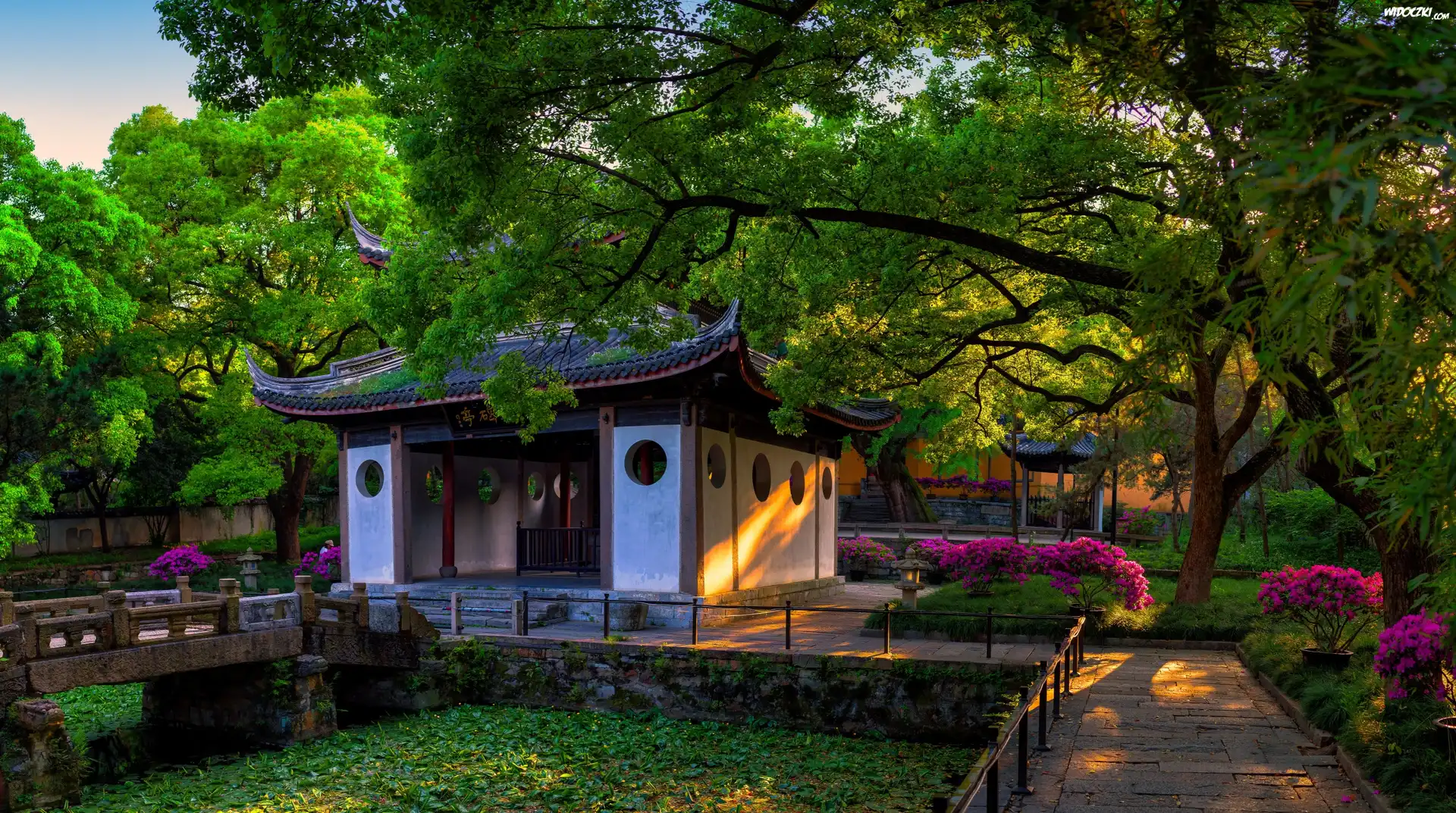 Zdjęcia, Chiny, Prowincja Jiangsu, Okolice Wuxi, Xihui Park, Altana, Drzewa
