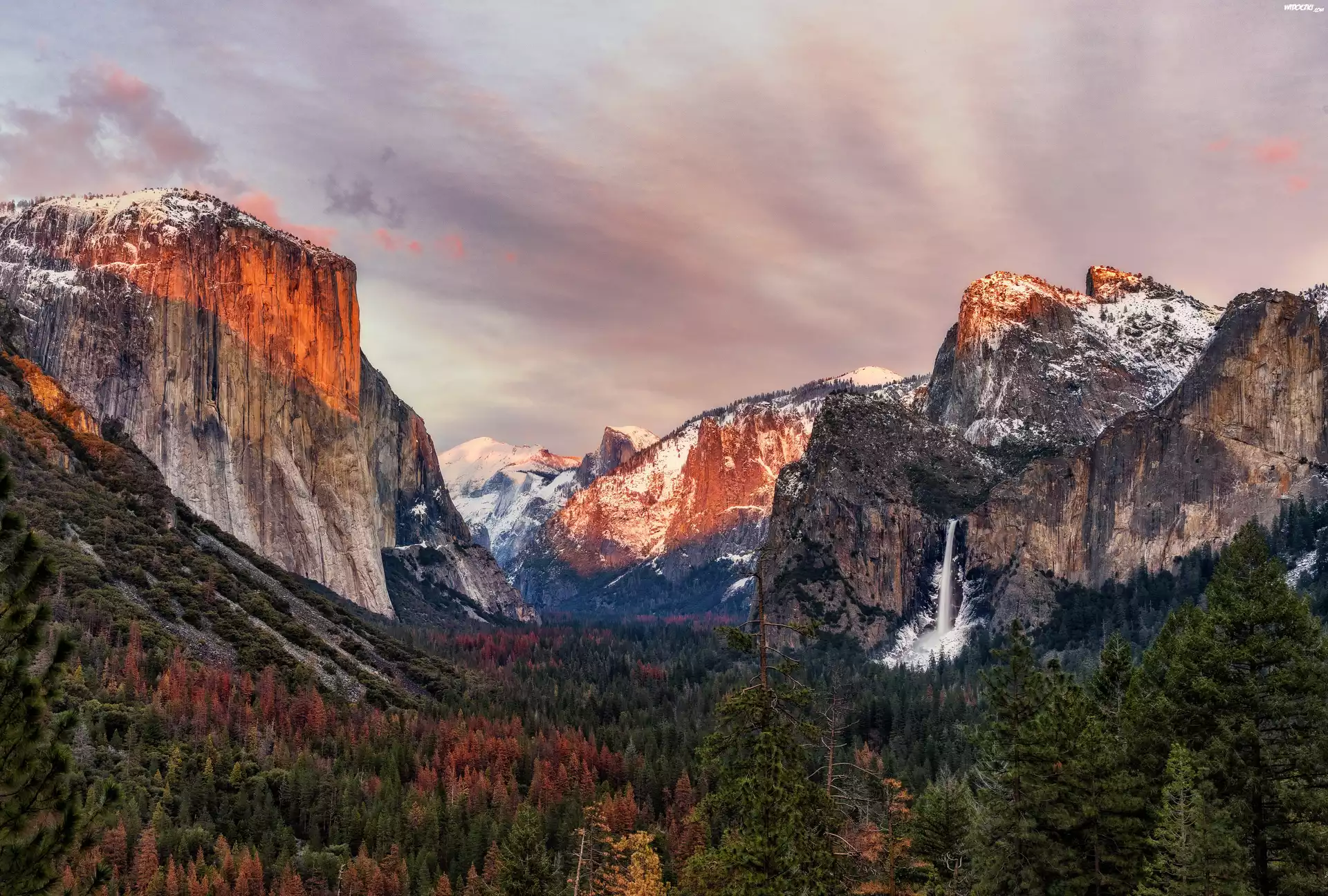 Zdjęcia, Stany Zjednoczone, Stan Kalifornia, Park Narodowy Yosemite, Góry, Las, Drzewa