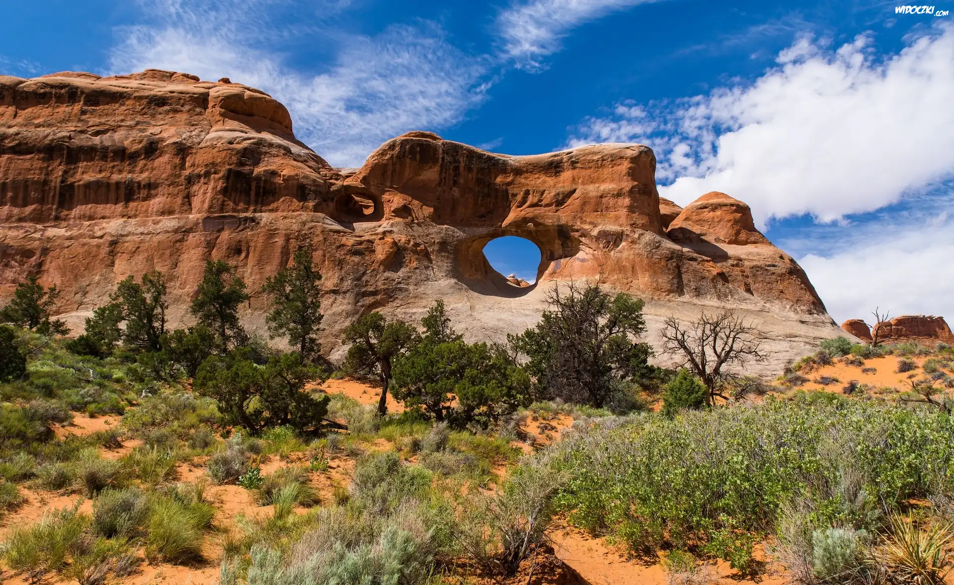 Kanion, Strumyk Arizona, Stany, Zjednoczone, Kanion, Białe, Chmury Kanion, Kaskada, Wody Kanion, Kolorado Kanion, Kamienie Kaniony, Czerwona, Pustynia Kanion Farma, Pastwisko, Koń, Kanion Kanion Kanion, Rzeka, Wodospad Warstwy, Skalne, Kanion Jaskinia, Kanion Uboga, Roślinność, Góry Park, Narodowy, Arches
