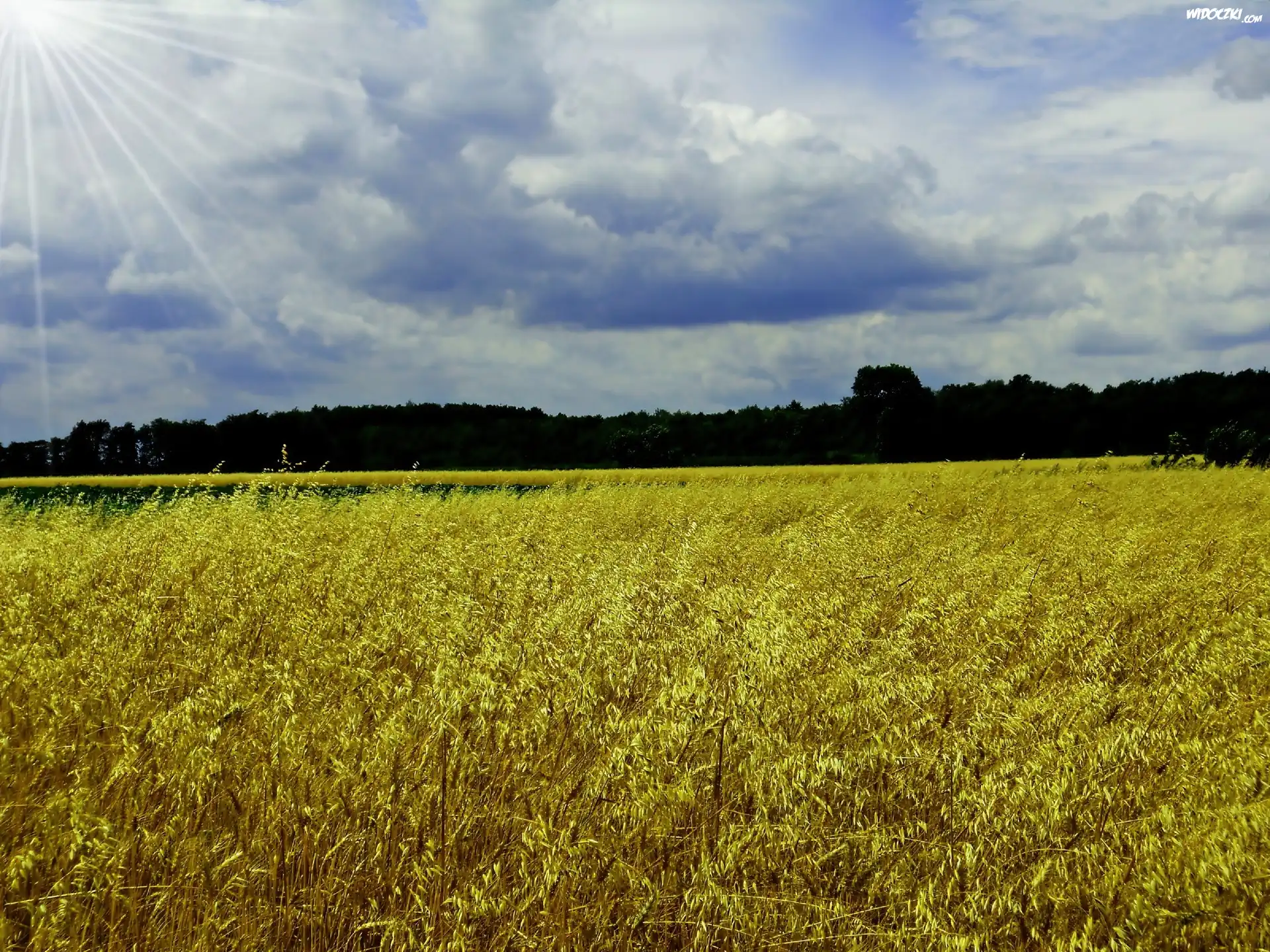 Zdjęcia, Kłosy, Drzewa, Niebo