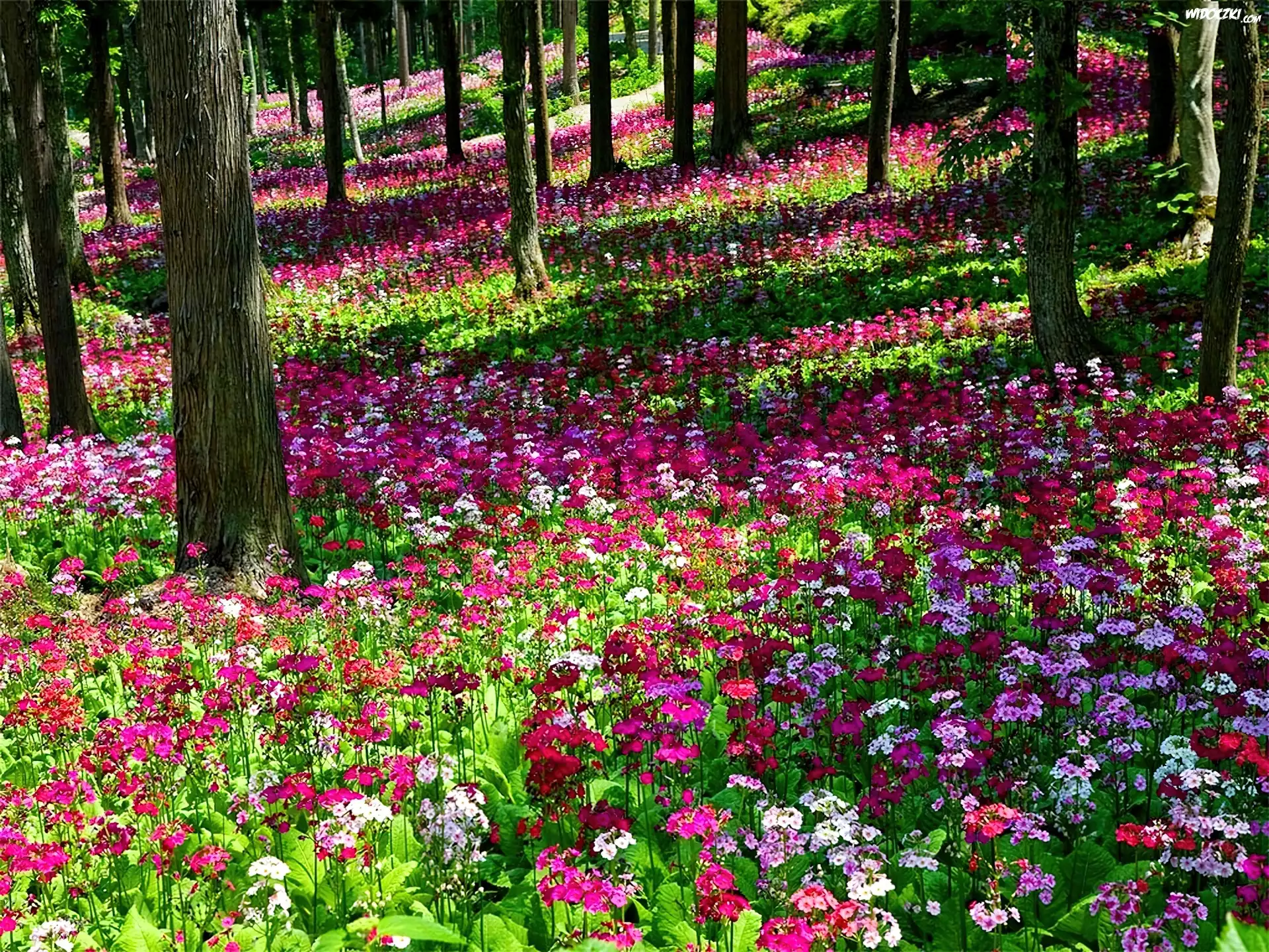 Zdjęcia, Drzewa, Łąka, Kolorowe, Kwiaty