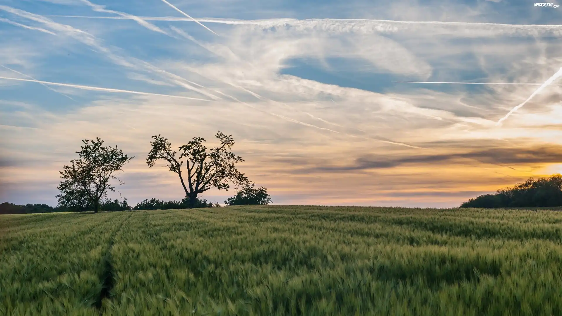 Zdjęcia, Drzewa, Pole, Ślady, Samolotów