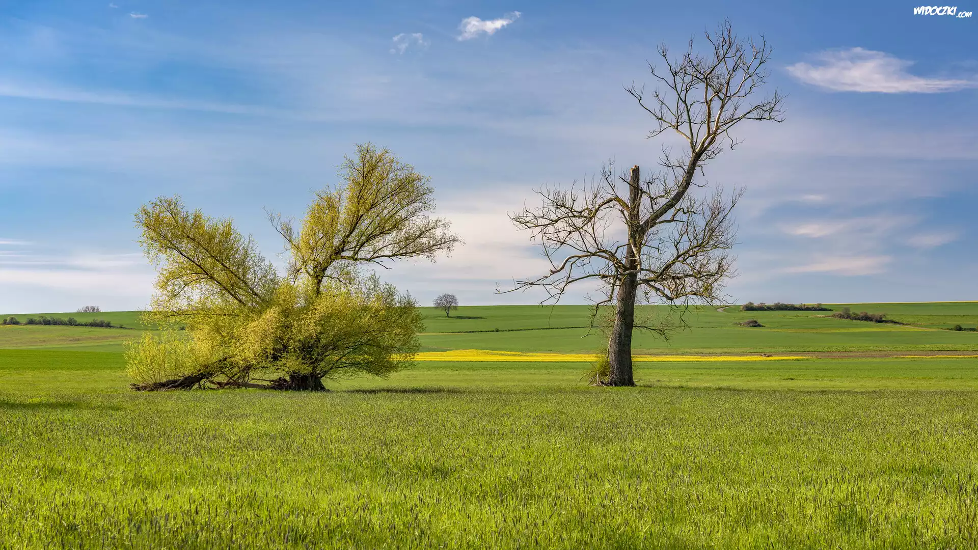 Zdjęcia, Łąka, Pole, Dwa, Drzewa