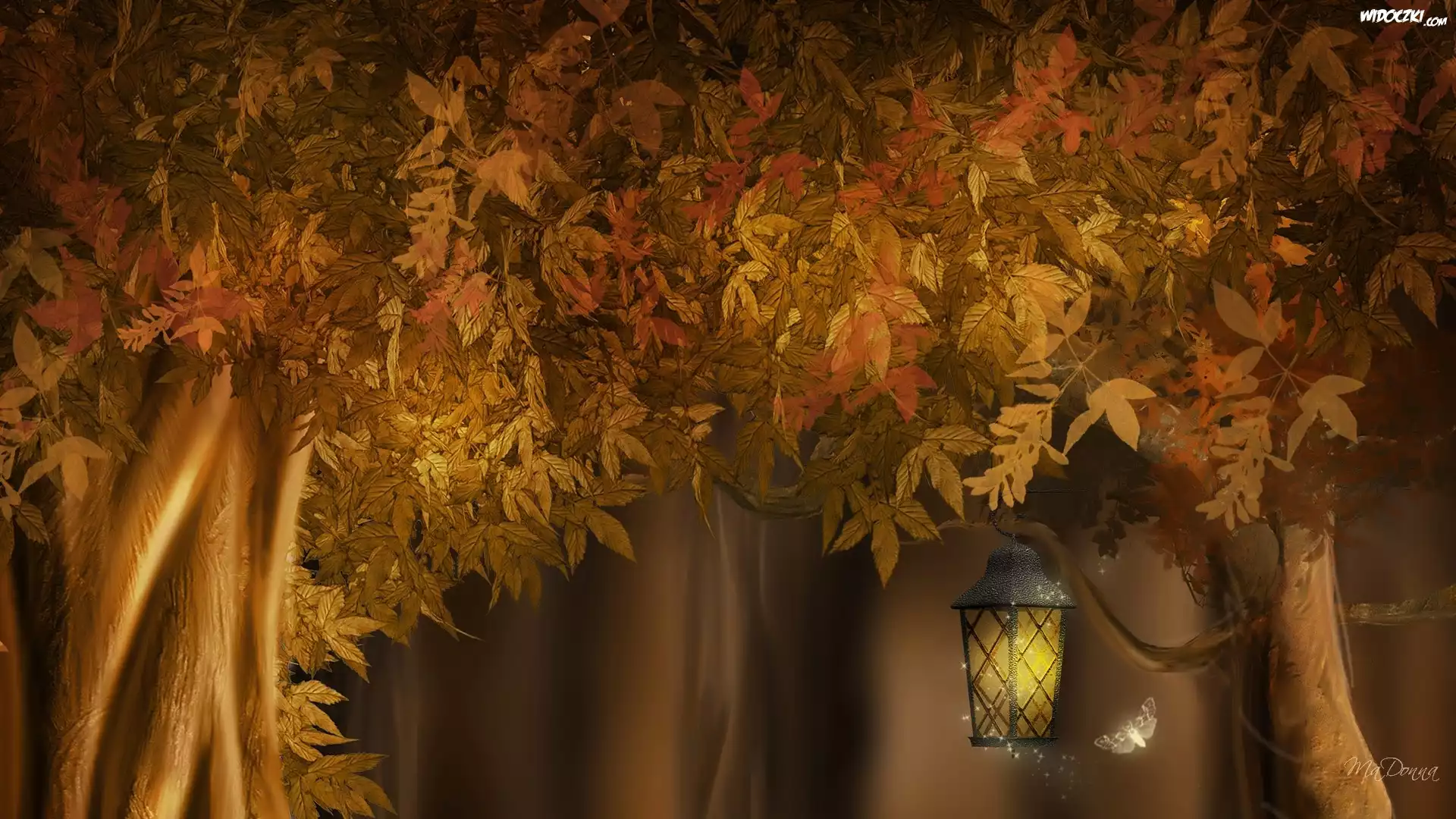 Zdjęcia, Drzewa, Liście, Lampion, Art
