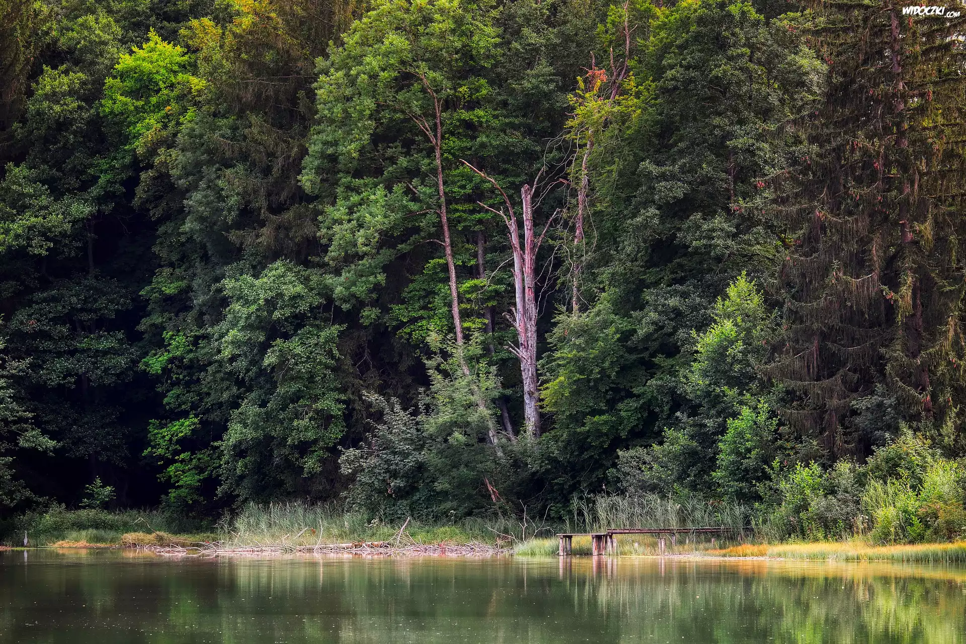 Zdjęcia, Las, Pomost, Jezioro, Drzewa