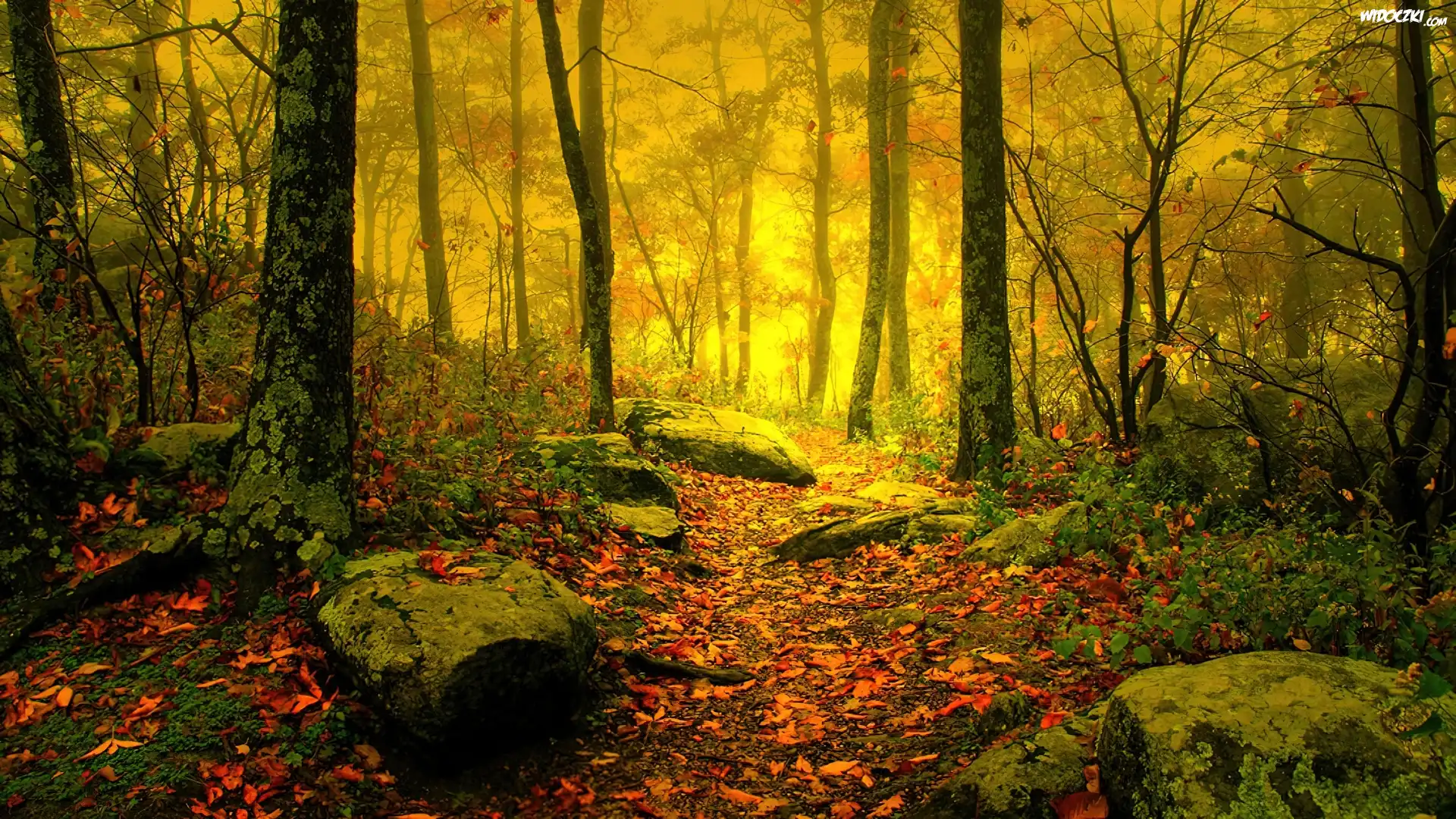 Zdjęcia, Las, Drzewa, Liście