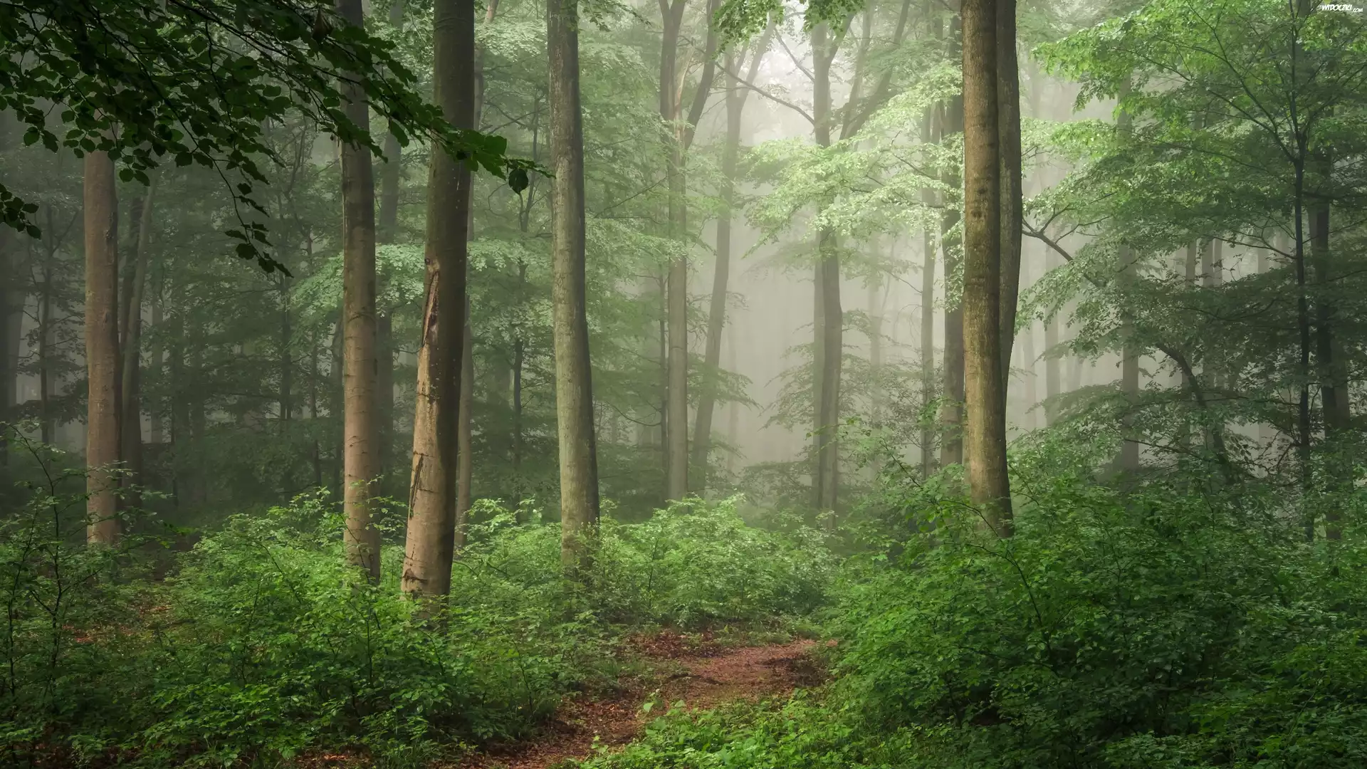 Zdjęcia, Las, Drzewa, Mgła
