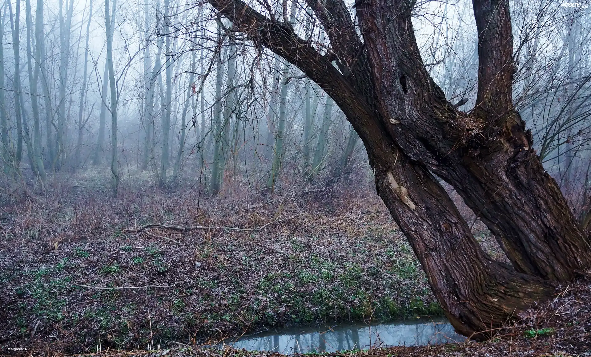 Zdjęcia, Las, Drzewa, Mgła