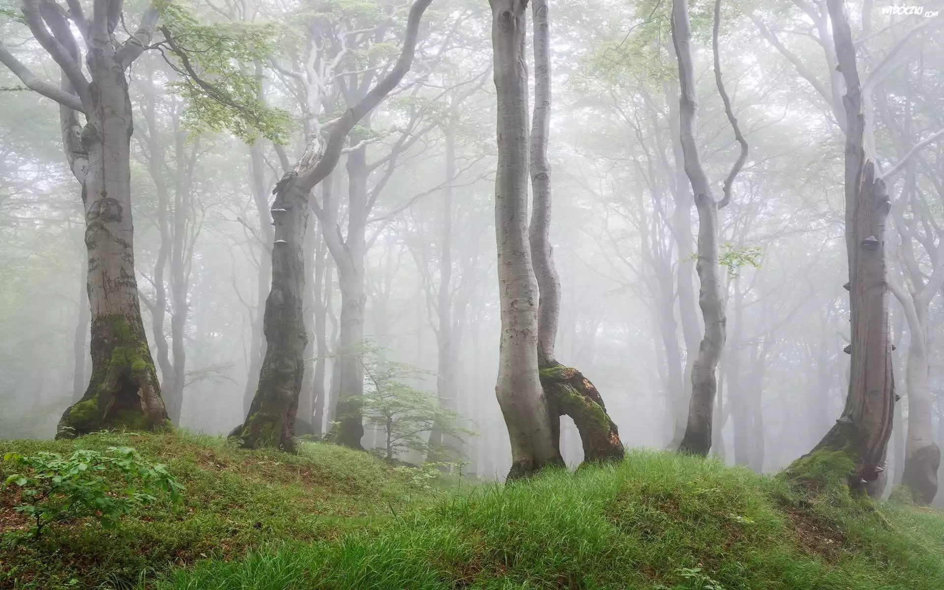 Zdjęcia, Las, Mgła, Pnie, Drzewa