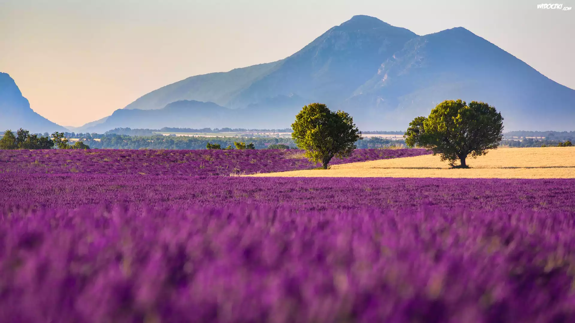 Zdjęcia, Lawenda, Drzewa, Góry