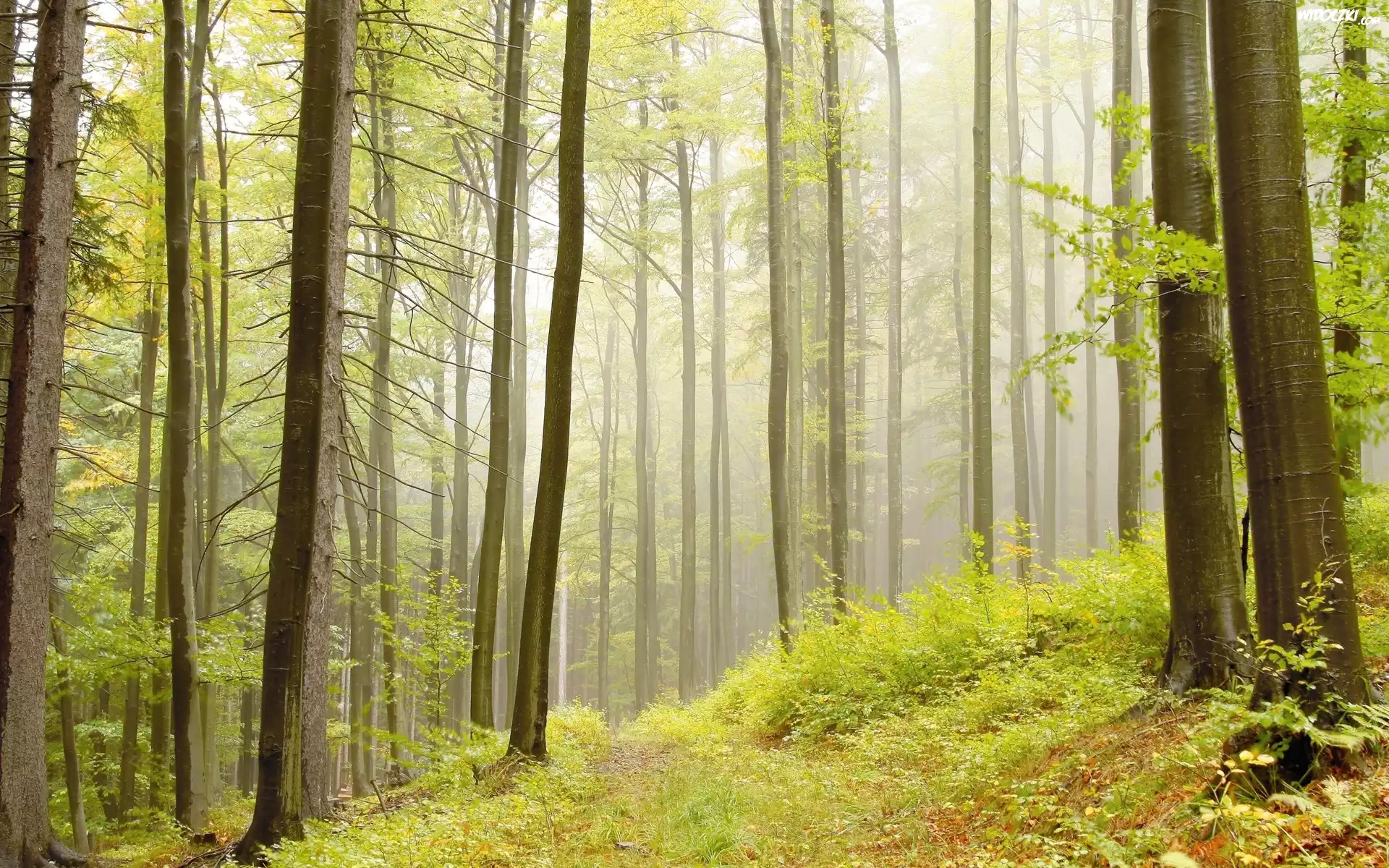 Zdjęcia, Drzewa, Trawy, Leśna, Droga