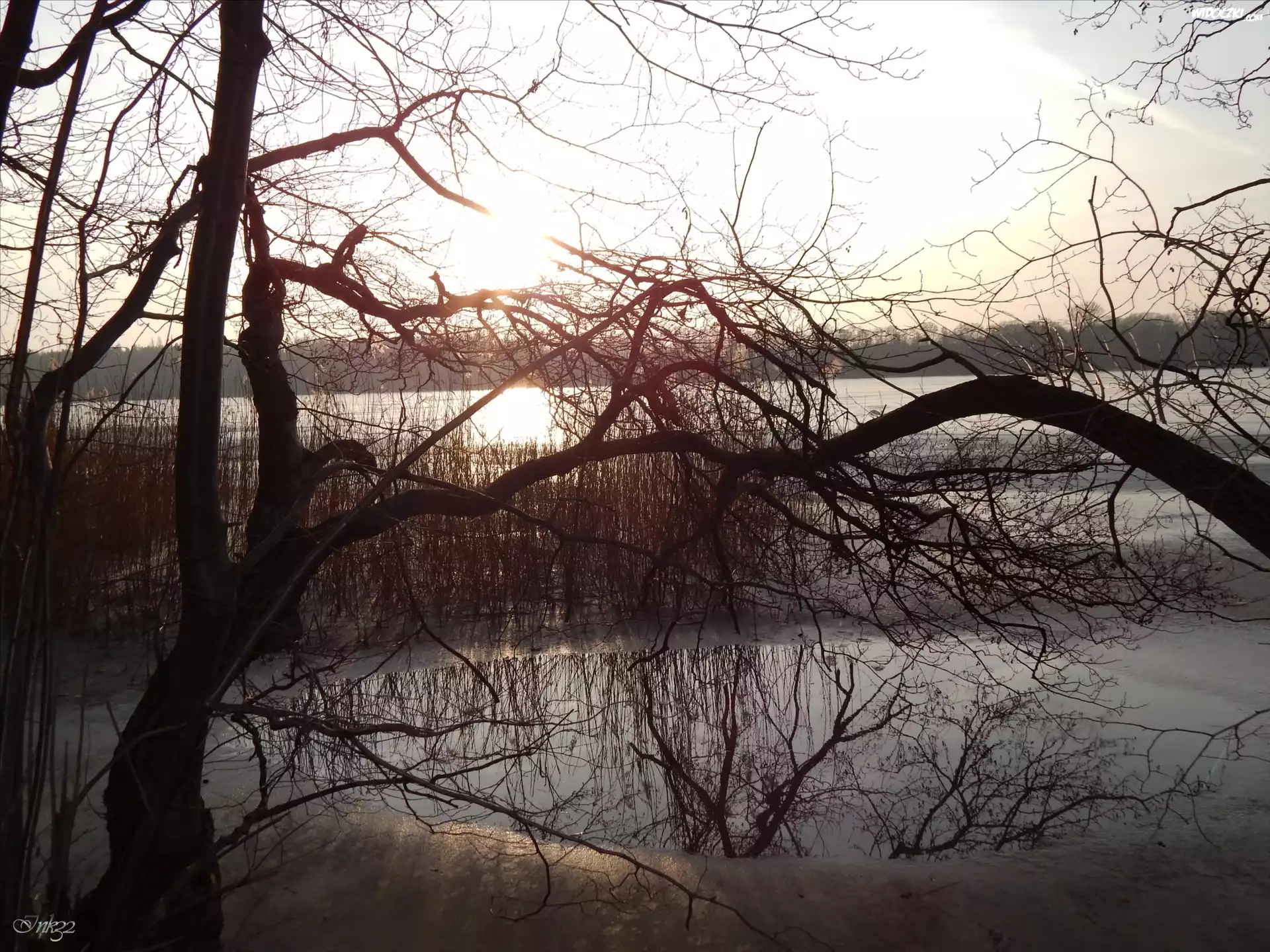 Zdjęcia, Drzewa, Gałęzie, Lód, Odbicie