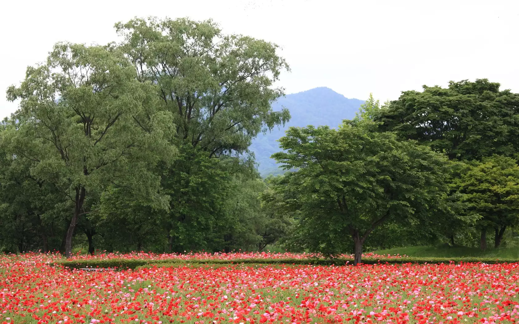 Łąka, Maki, Drzewa, Góry