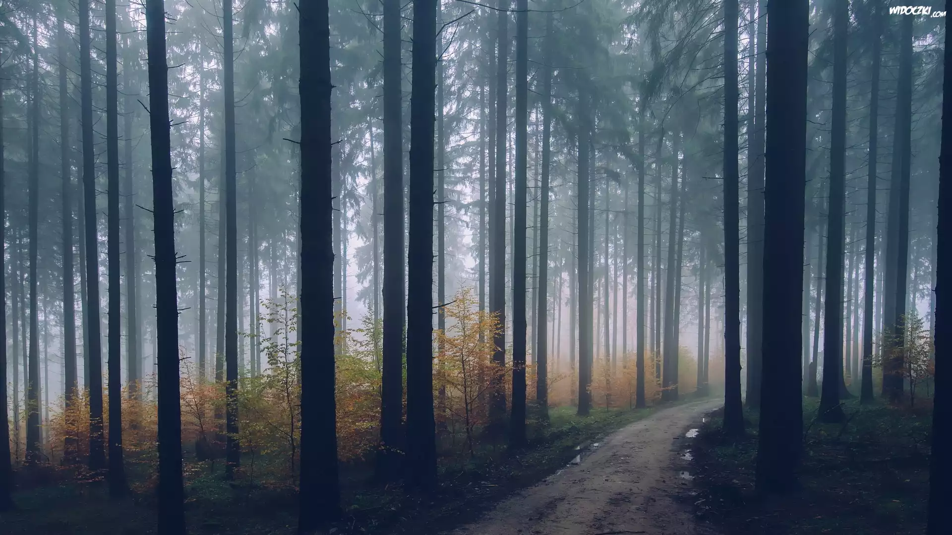 Zdjęcia, Drzewa, Las, Mgła, Ścieżka