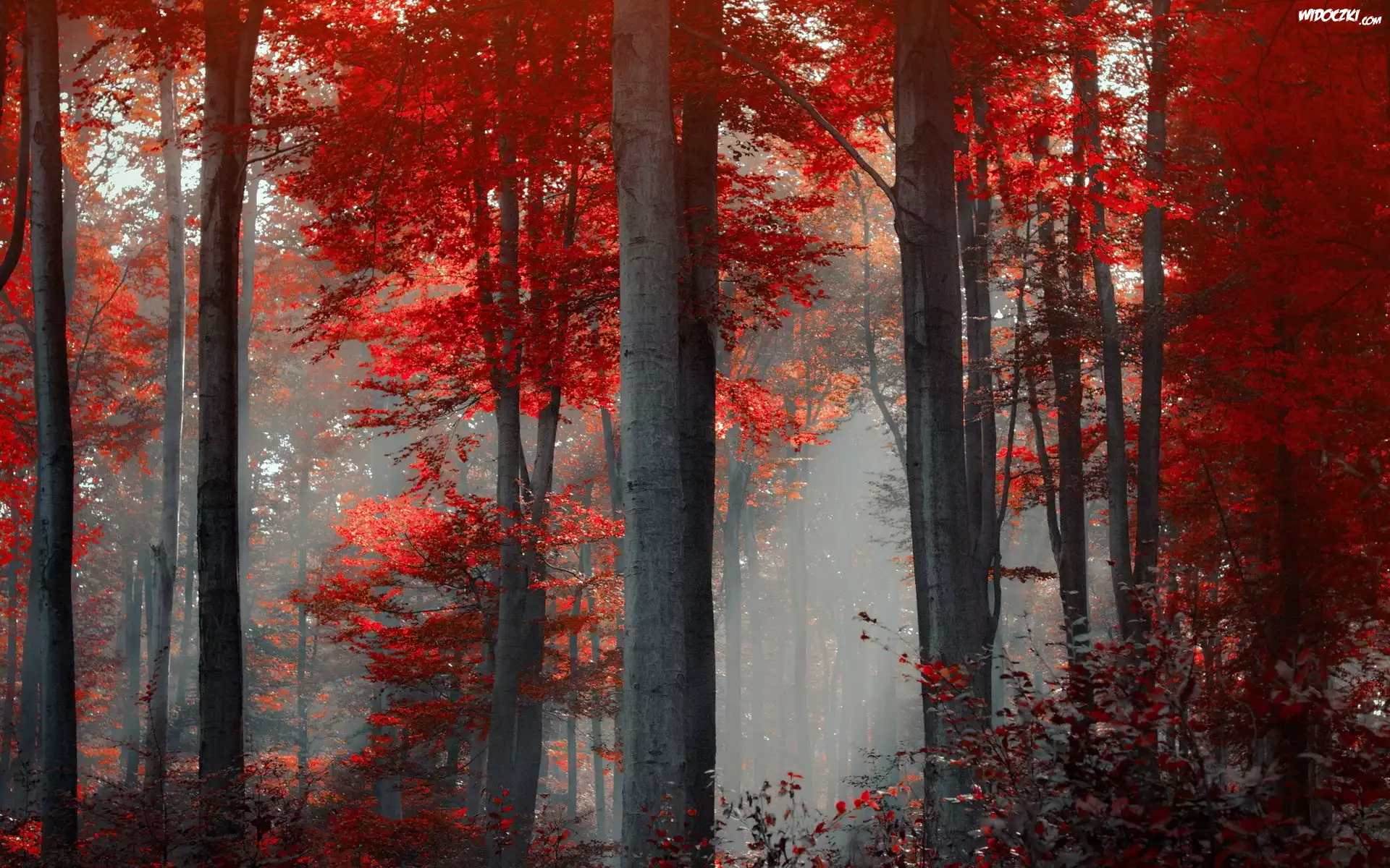 Zdjęcia, Drzewa, Las, Mgła, Jesień