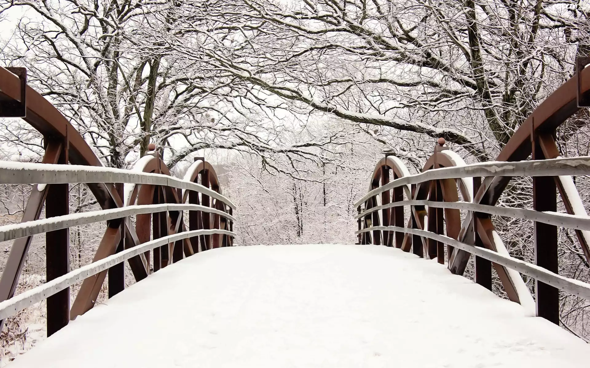 Zdjęcia, Most, Drzewa, Zima